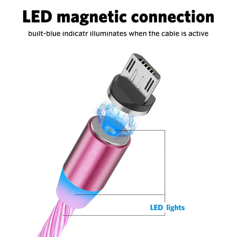 Магнитный зарядный мобильный телефон кабель струящийся свет для iPhone 11 8 Xr Samaung заряд кабель с разъемом Micro USB Type-C со светодиодной подсветкой освещение кабель