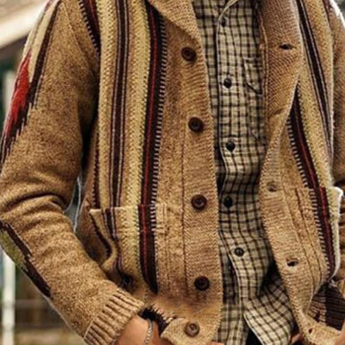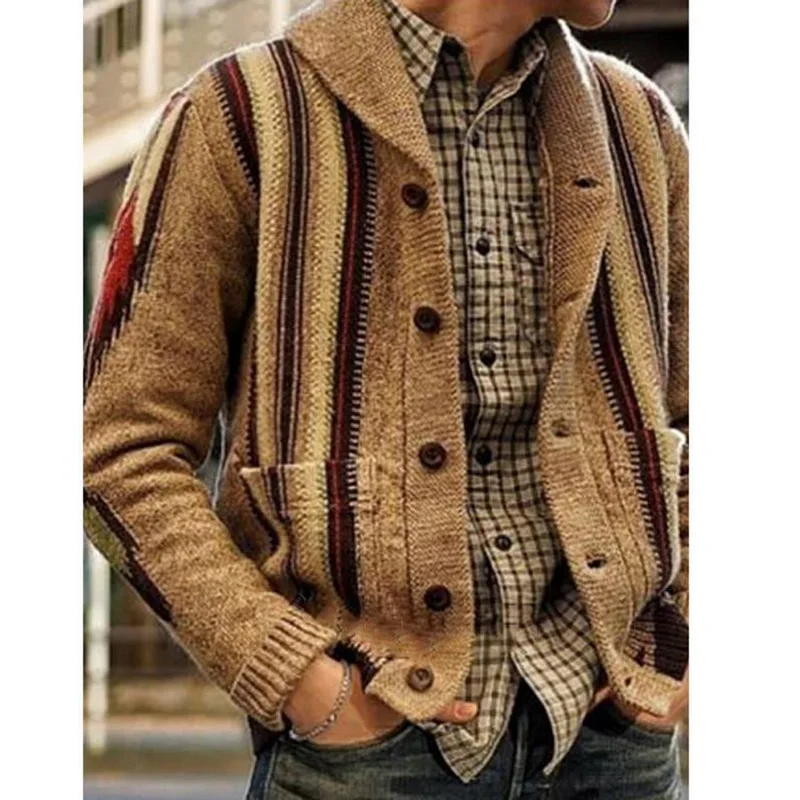 Свитер мужской теплый трикотажный на пуговицах, Приталенный кардиган с V-образным вырезом, свитер в полоску, винтажные повседневные топы, на осень