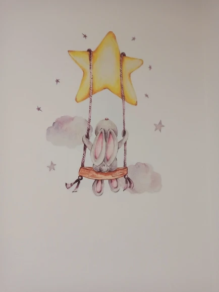 очень красивая наклейка, милый зайка, цвет сочнее, чем на фото