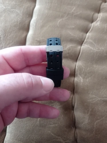 Мягкий и приятный вид. Прорезиненная Резина немного свободная, но часы не выпадают. Швы не кажутся прочными, но за эту цену это легкие 5 звезд. Он собирает пыль, но это потому, что он резиновый, ничего необычного там нет. Рекомендовано.