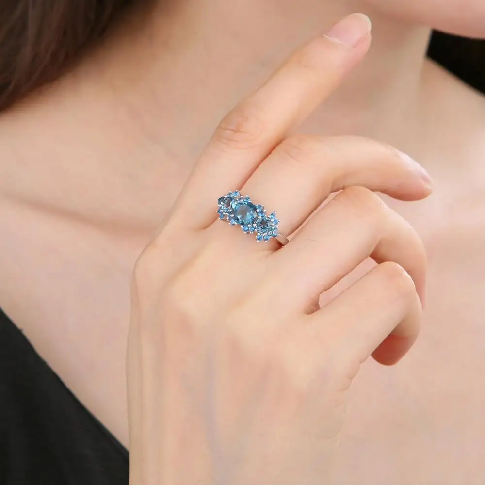 Женское кольцо с изумрудом GEM'S BALLET, кольцо с натуральным небесно-голубым топазом и камнем на 925 пробы