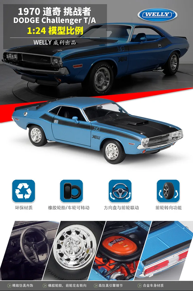 WELLY 1:24, 1970, DODGE Challenger T/A, моделирование, сплав, модель автомобиля, украшение, коллекция, игрушки, инструменты, подарок