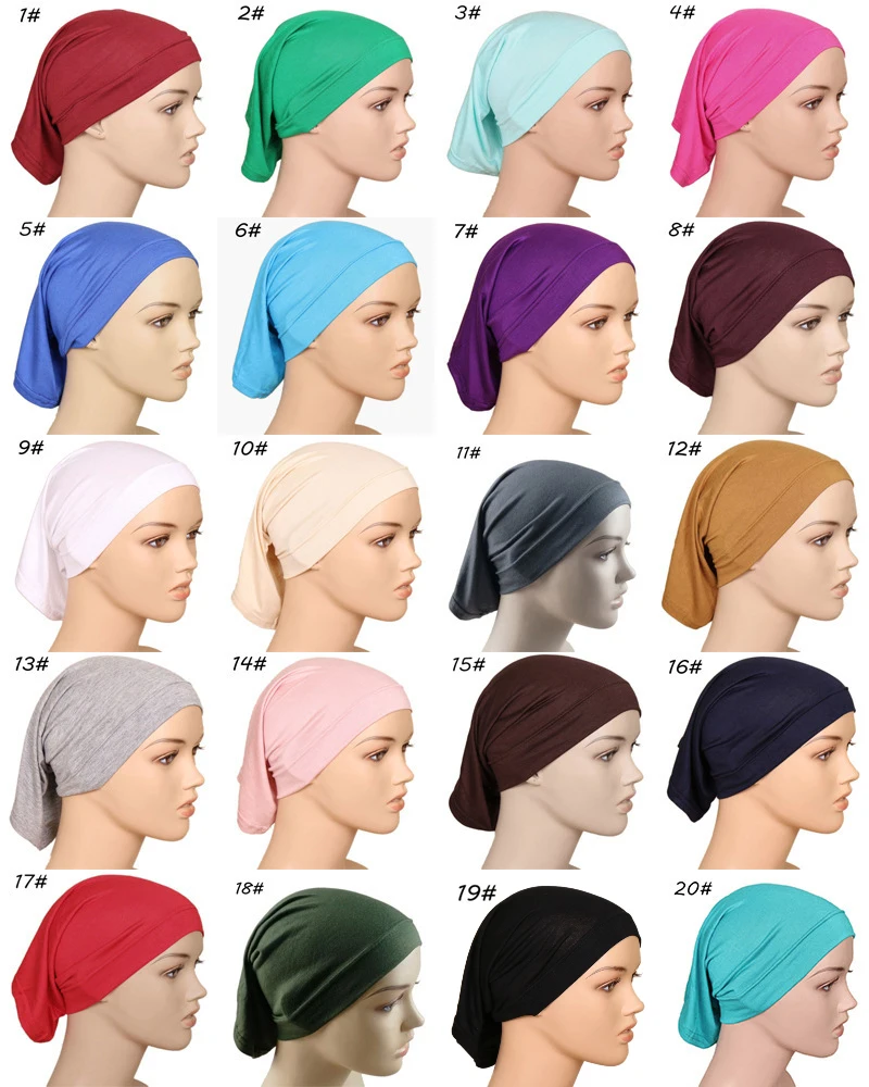 1 шт. мусульманский Для женщин Кепка Chemo хлопок Underscarf крышка тюрбан исламский Beanie Skullies, шапка одноцветная Цвет тюрбан