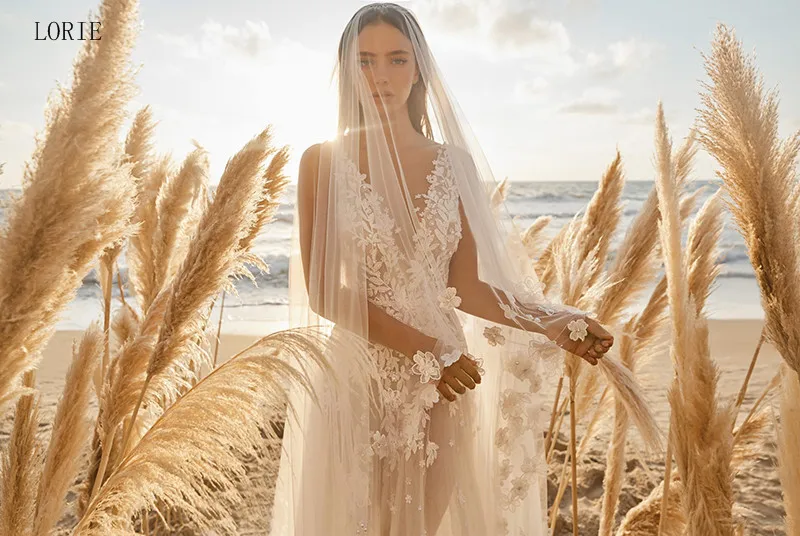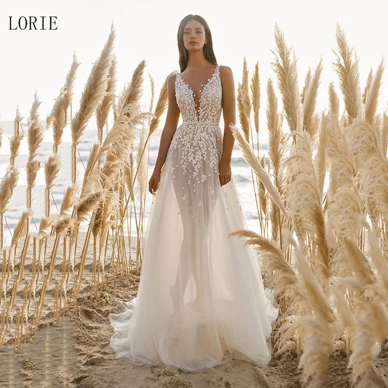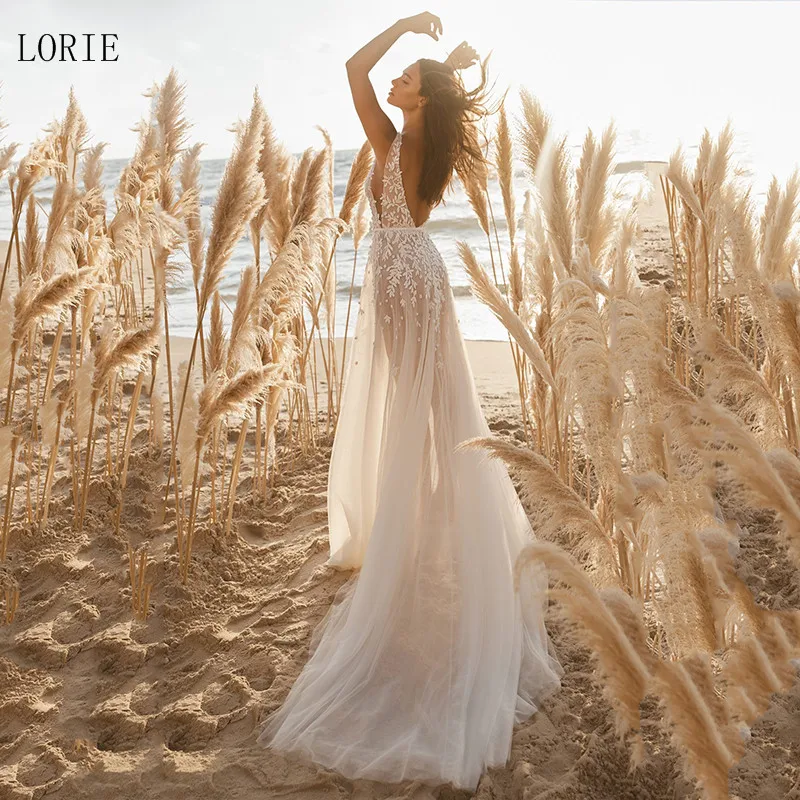 LORIE ТРАПЕЦИЕВИДНОЕ шелковое Тюлевое свадебное платье с цветочной кружевной аппликацией 2020 платье для невесты пляжное сексуальное свадебное платье с V-образным вырезом платье для невесты