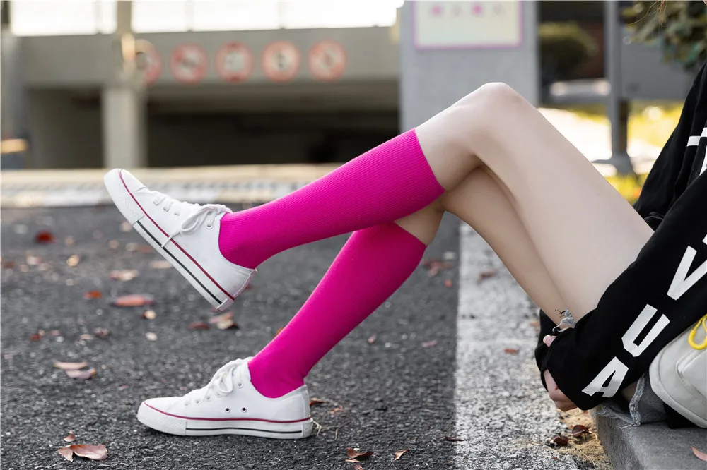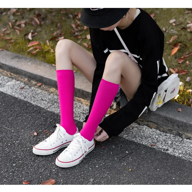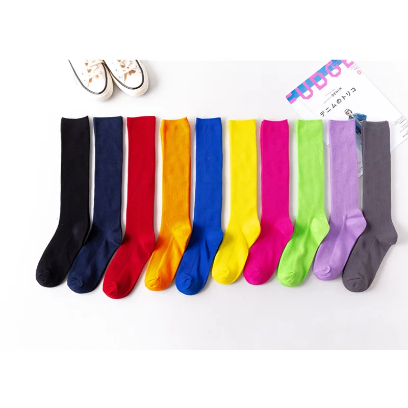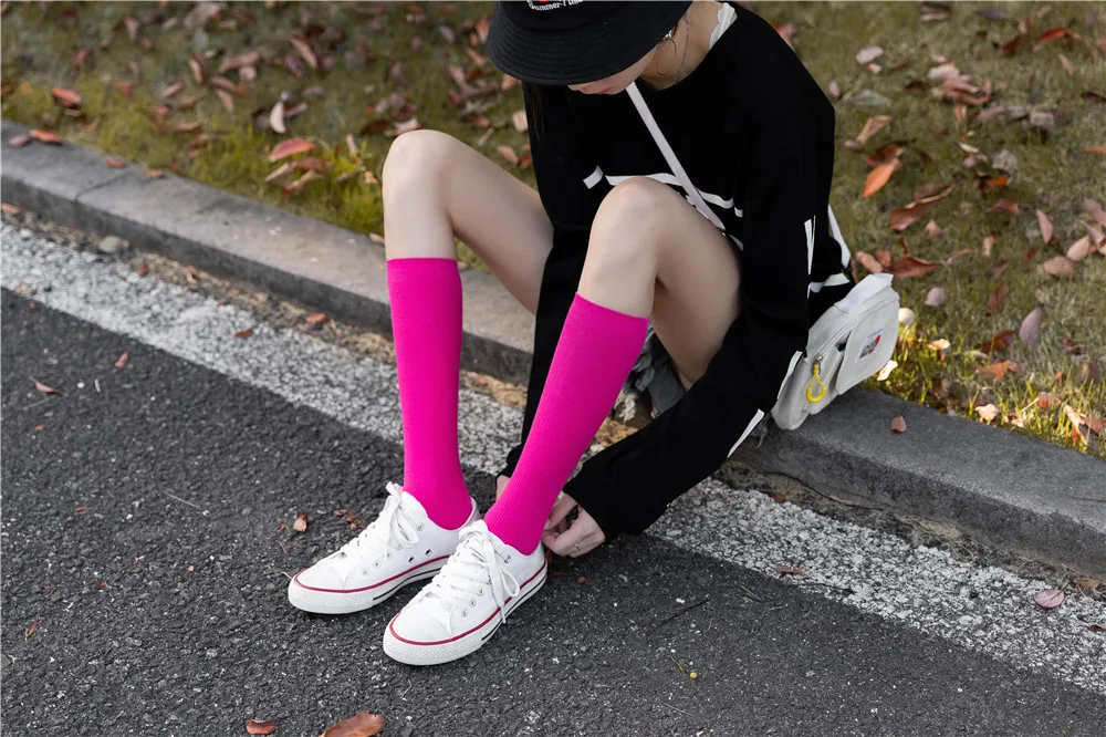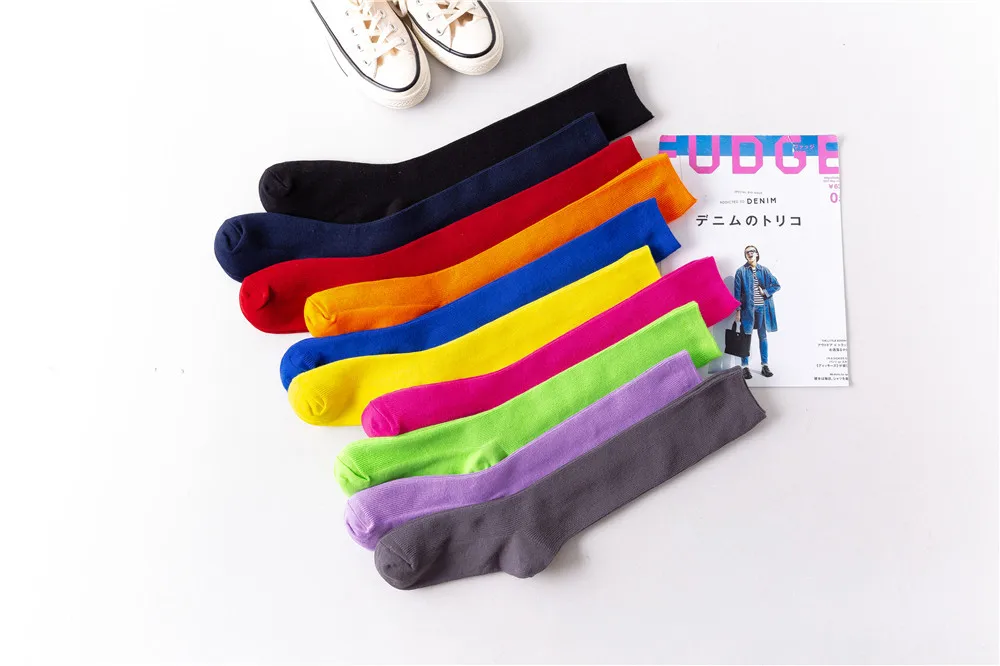 Носки женские в стиле Харадзюку, флуоресцентные цветные, высокие, однотонные, модные, теплые, длинные в стиле хип-хоп, в стиле Харадзюку, радужные
