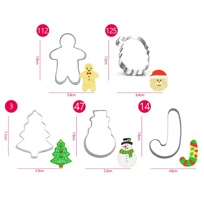 5 шт. Рождественский резак для печенья, форма Санты, помадка, кондитерские изделия, хлеб, сэндвич, резак для печенья, нержавеющая сталь, праздничные формы для печенья