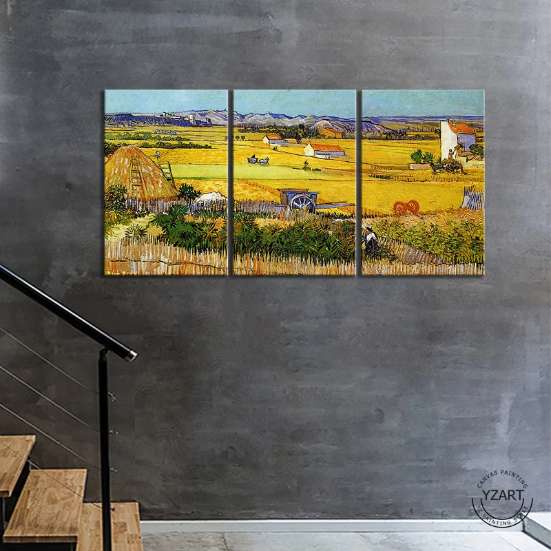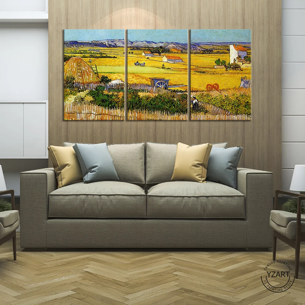 3 предмета Урожая Пшеницы поле Винсента Ван Гога абстрактные картины настенный Декор картина для Спальня стены Картины-без рамки