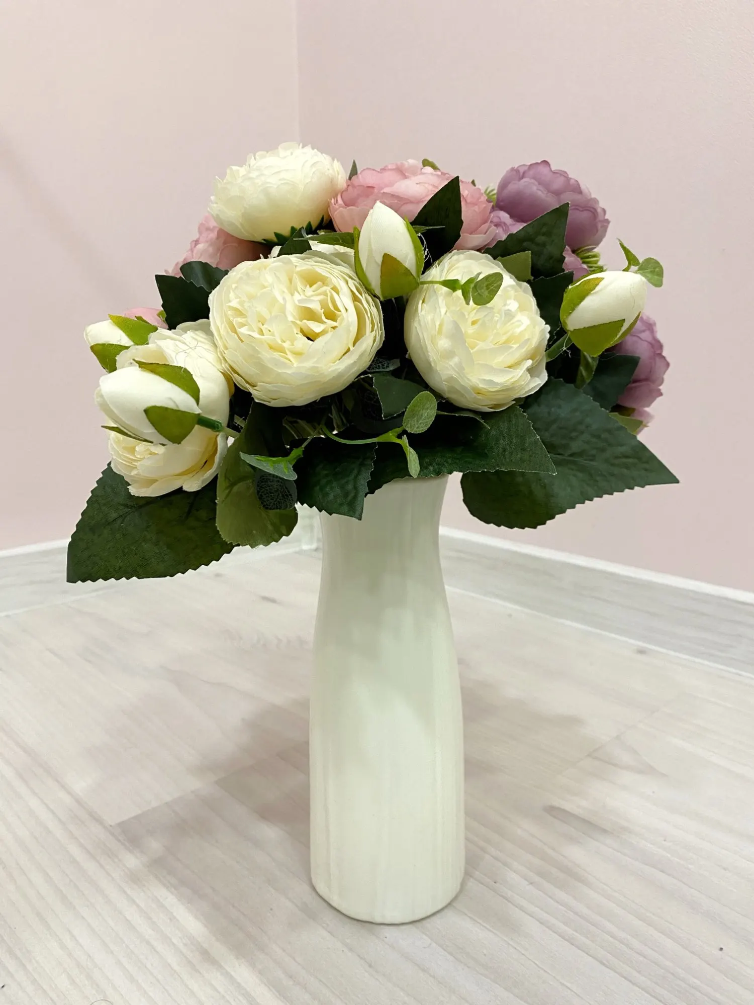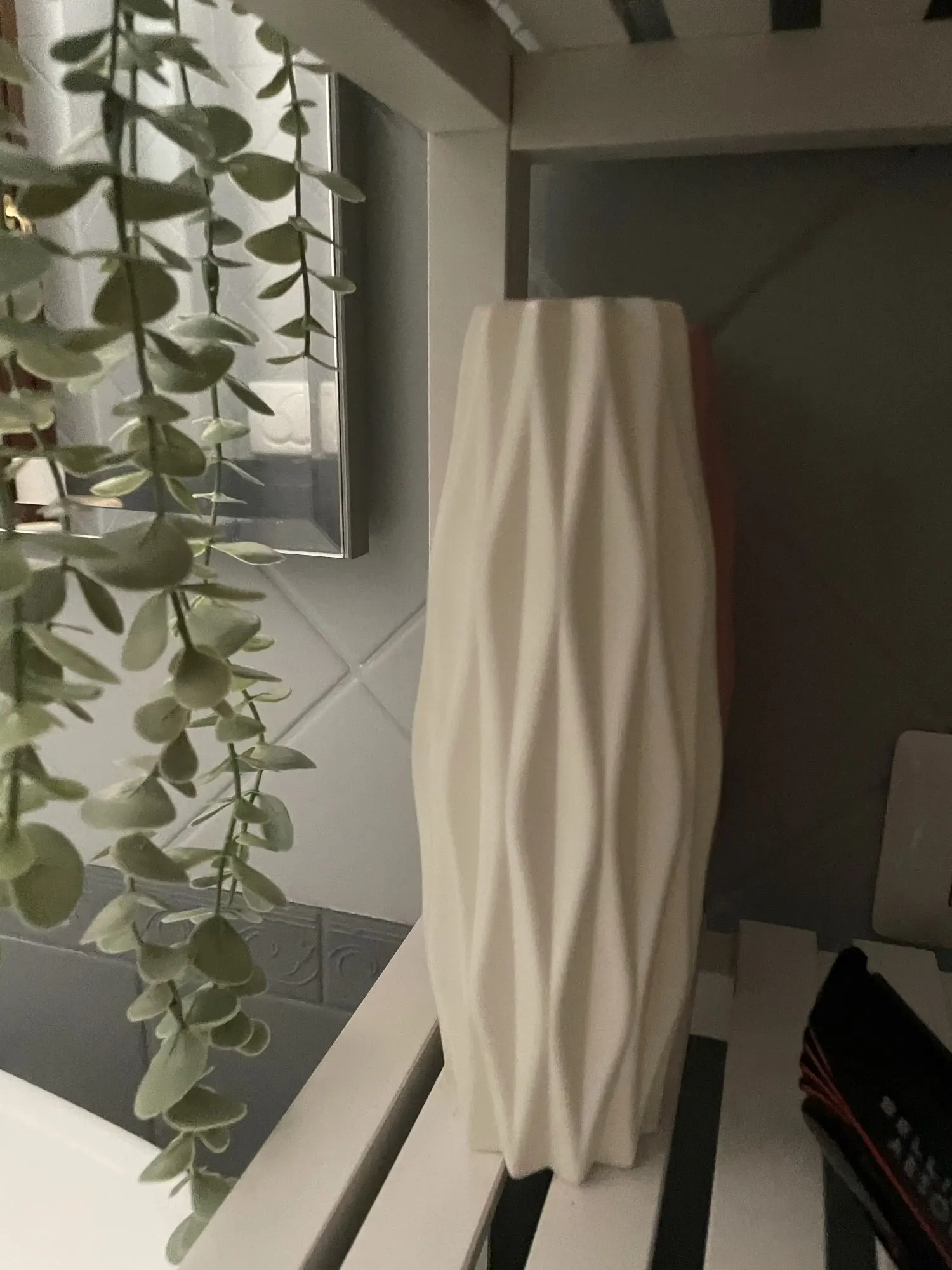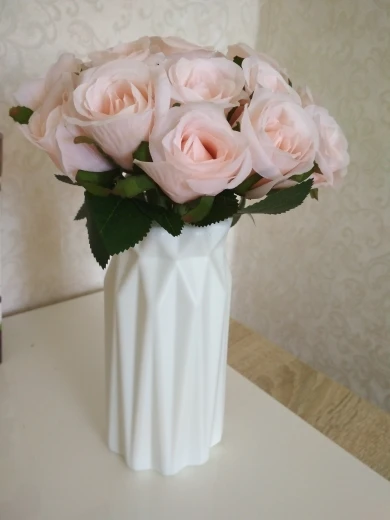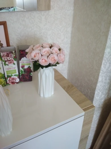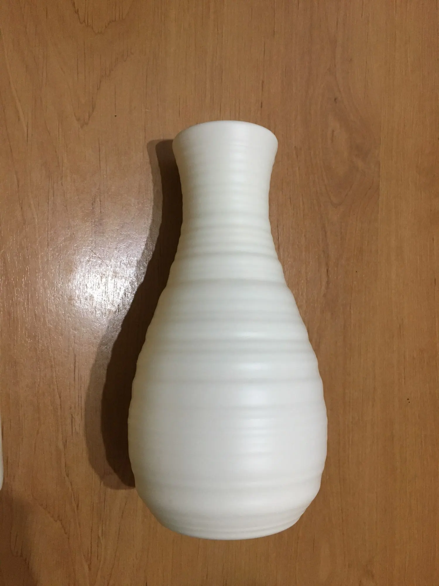 Так себе ваза. Сделана из пластика, швы видны. Но издалека смотрится нормально. Цвет больше молочный, чем белый. Продавец очень долго отправлял заказ, но доехали относительно быстро и ,на удивление, целые (не было никакой защитной упаковки, пакет и всё).