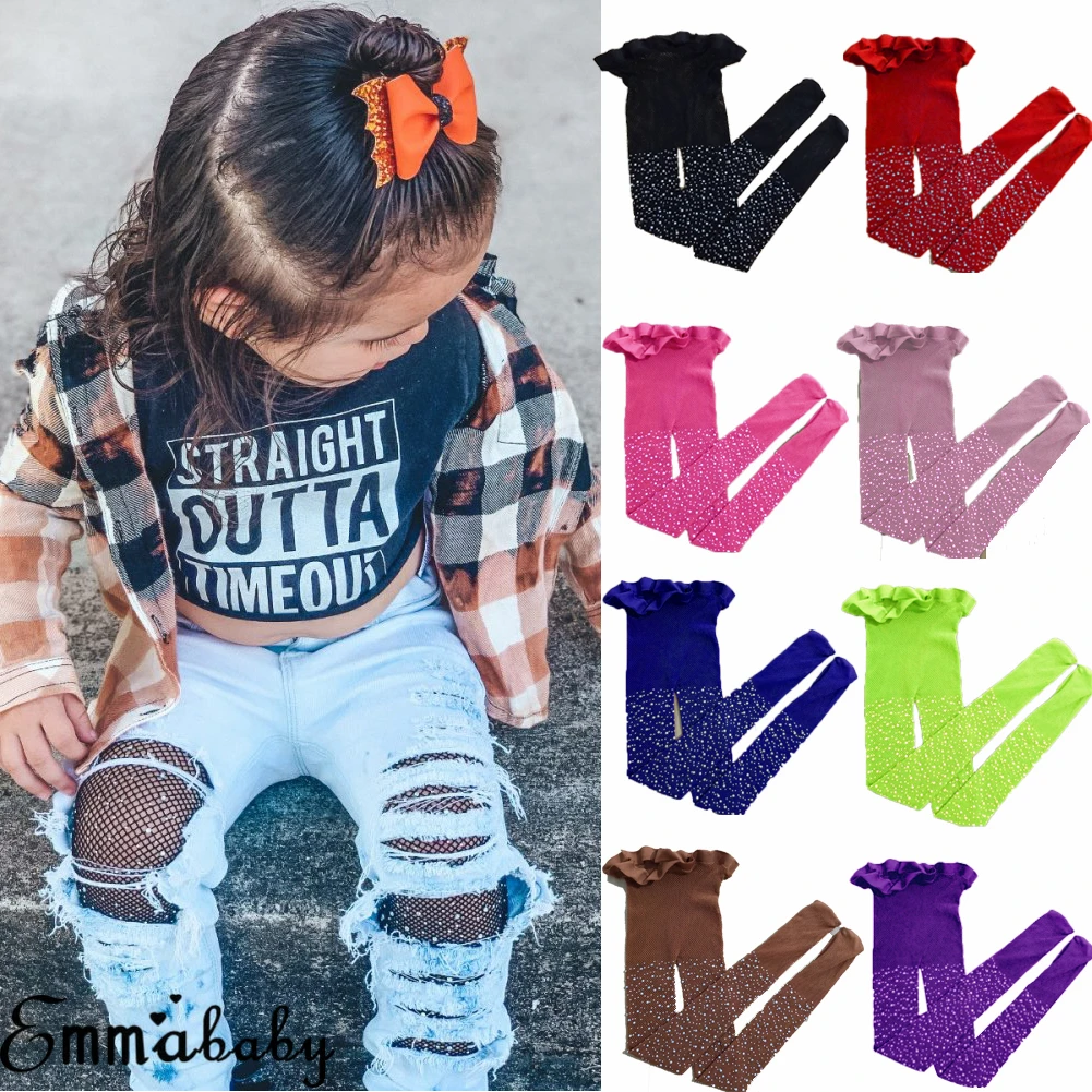 Новинка 2019, детские колготки для девочек, прозрачные стразы, сетч...