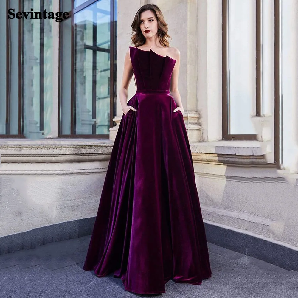 Sevintage трапециевидной формы длинные бархатные Выпускные платья складки Милая-образным вырезом без рукавов Длина вечерние платья 2021 для принцесс; Вечерние платья размера плюс