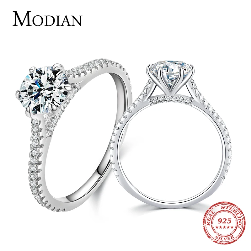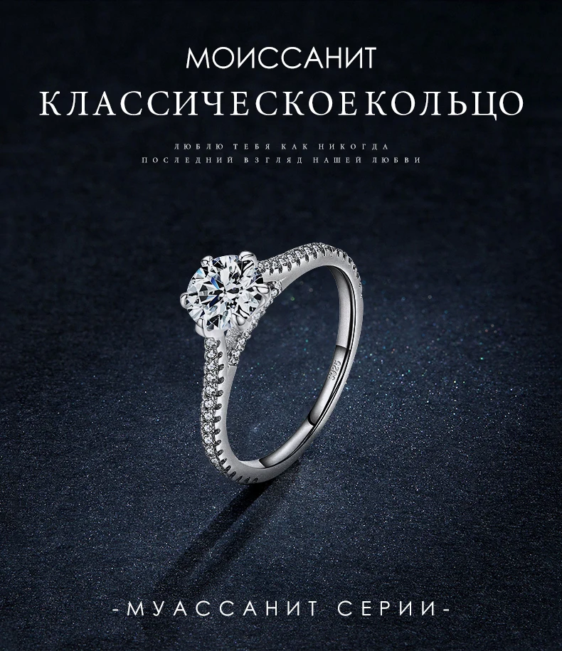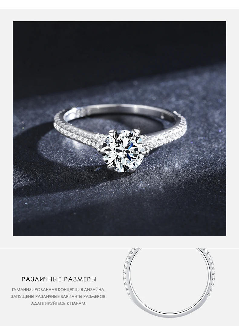Кольцо женское из серебра 925 пробы, 1 карат, с муассанитом