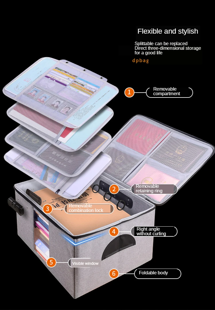 Гибкий и стильный, можно заменить, прямое трехмерное хранение для хорошей жизни1. Со съемным отсеком2. Съемное стопорное кольцо3. Съемный кодовый замок4. Прямой угол без завивки5. Видимое окно6. Складной Корпус