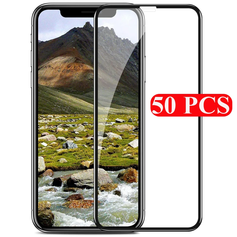 Закаленное стекло с полным покрытием 50 шт. для iPhone 13, 12, 11 Pro, Max, X, XS, Max, XR, 6, 7, 8 Plus, SE 2020, защитная стеклянная пленка 13 Pro Max