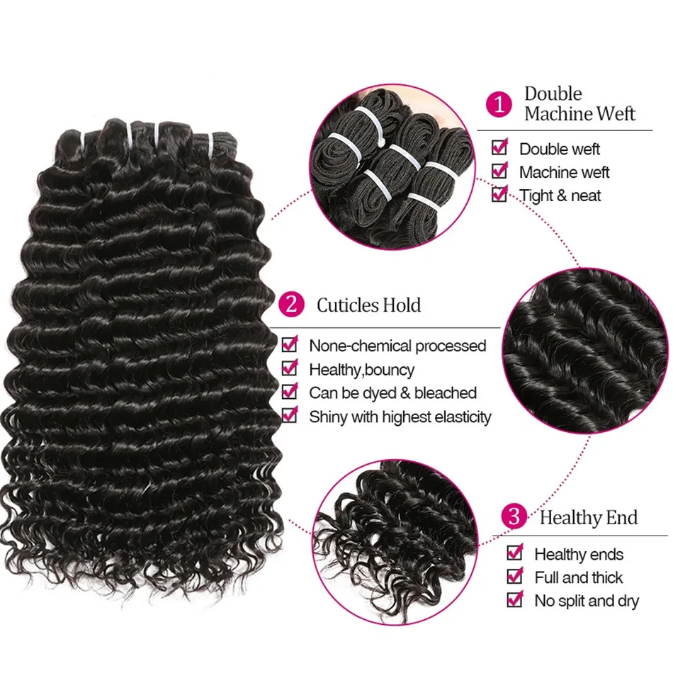 Hair Texture:100% Human Hair Deep Curly Wave Hair Weave Extensions