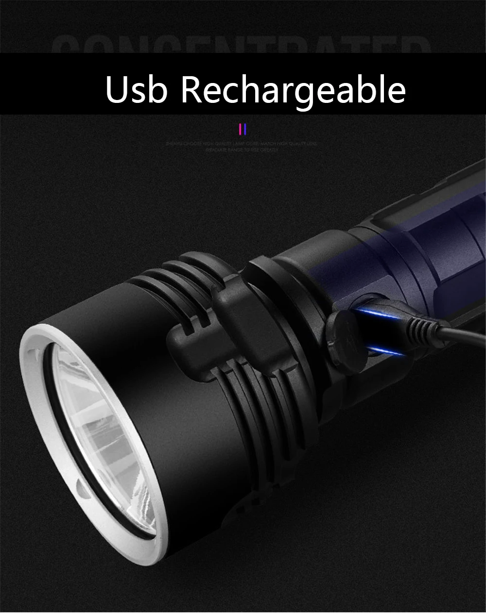 【 Безопасно и легко заряжать фонарик 】: мощный перезаряжаемый фонарик Встроенный зарядный порт, который позволяет удобно заряжать тактический фонарик через зарядное устройство, встроенное защитное устройство