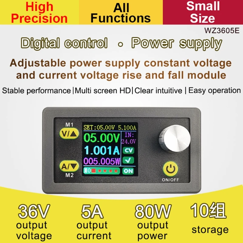 Понижающий преобразователь постоянного тока CC CV 36 В 5 А 80 Вт 10 групп силового модуля цветной экран Стабильный Регулируемый источник питания