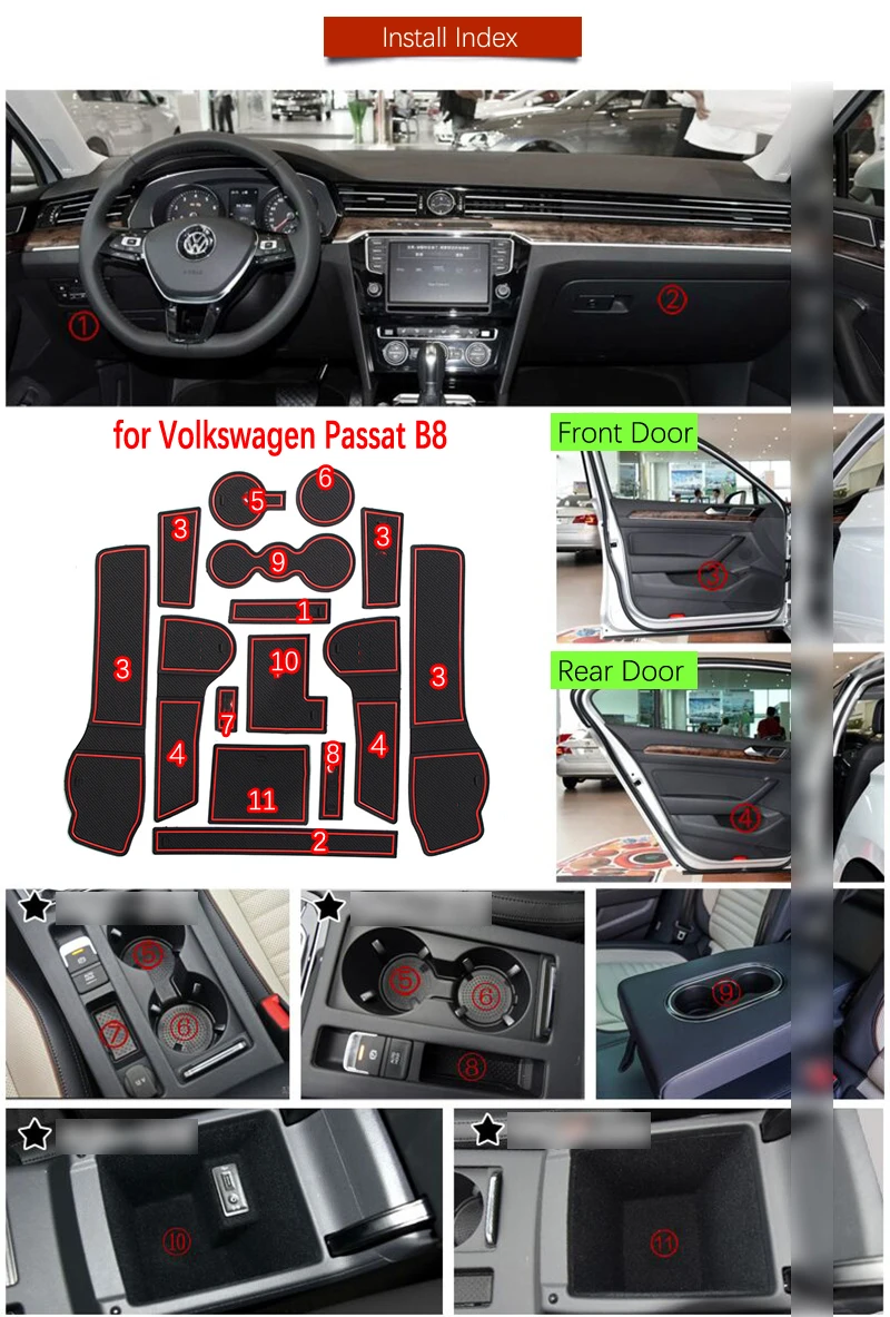 Противоскользящий резиновый коврик для дверной канавки для VW Passat B8 Volkswagen вариант Alltrack GT 2015 ~ 2020, аксессуары, коврик для телефона