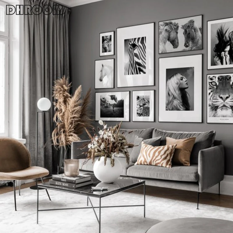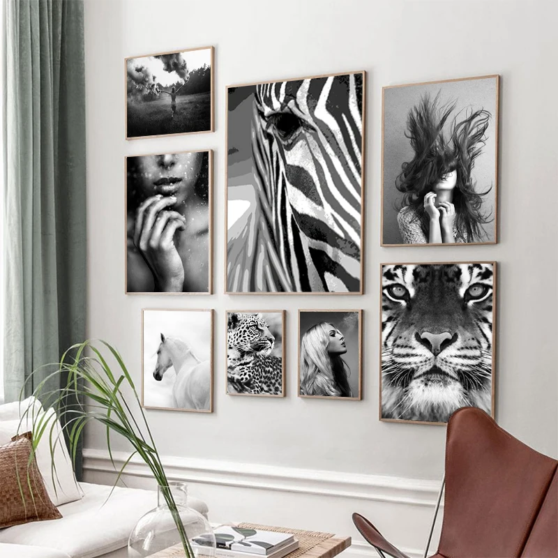 Стильный Черный и белый стена галерея постеры с животными зебра картина тигр на холсте сексуальные девушки печати настенные картины Декор для дома