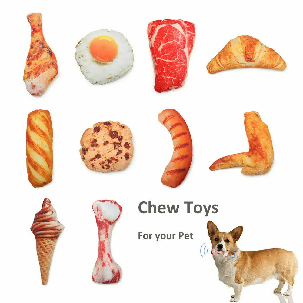 Креативная забавная имитация жевательных игрушек для собак, мороженое, фрукты, хлеб, устойчивый к укусам, со звуком для домашних животных, собак, кошек, игрушка для собак