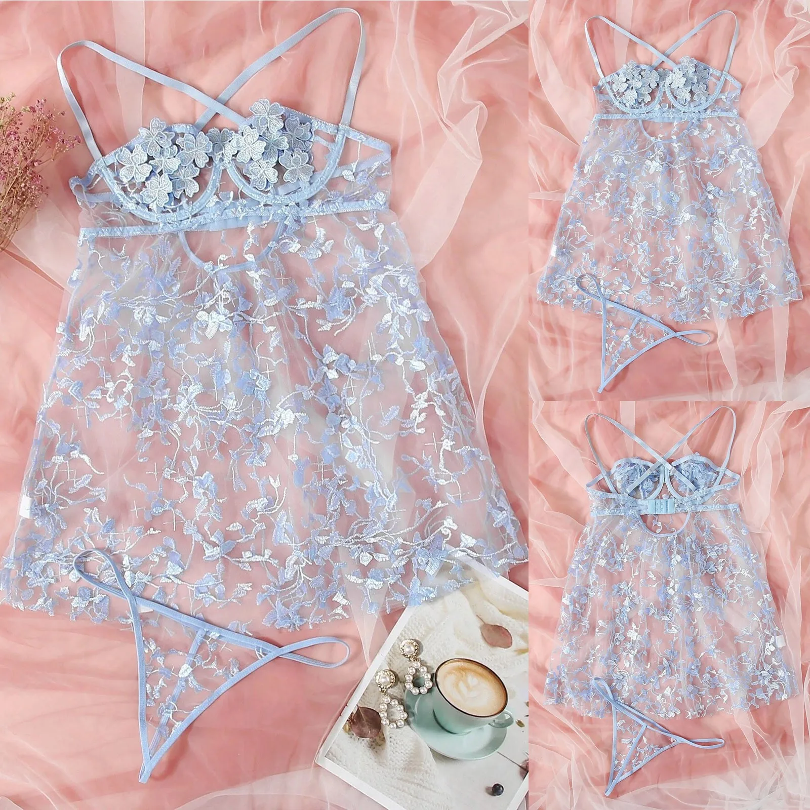Вышивка пижамы Ночная рубашка сексуальное женское белье Для женщин, нижнее белье, одежда для сна, наклейка стринги