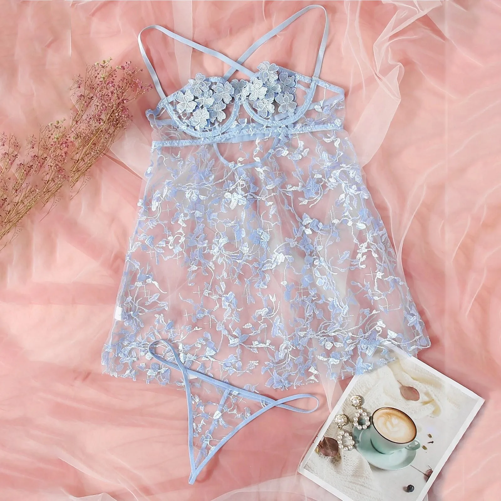 Женское нижнее белье с вышивкой, Сексуальная кружевная прозрачная ночная рубашка с цветочным рисунком, нижнее белье, бесшовные бюстгальтеры, комплекты удобных трусиков, интимное белье