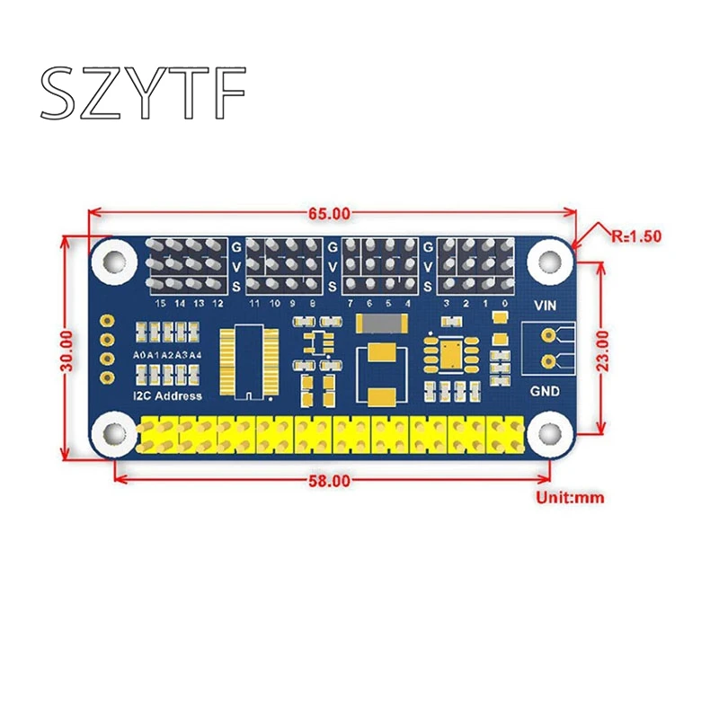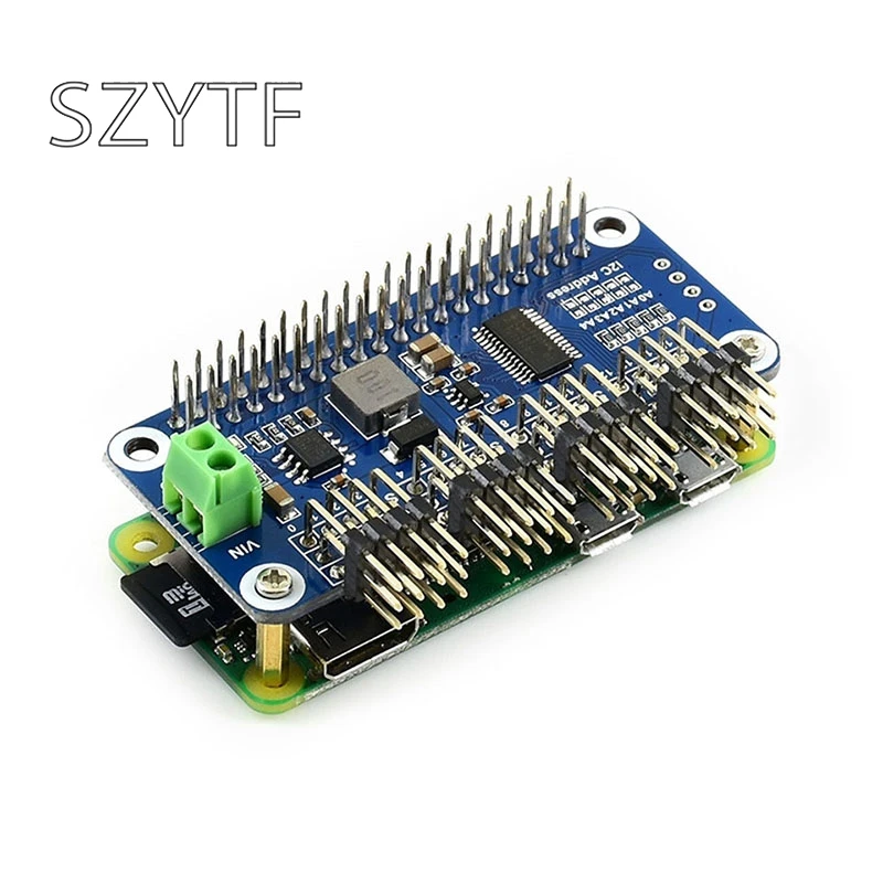 Введение продуктаЭтот продукт представляет собой драйвер рулевого механизма, специально разработанный для Raspberry Pi. Он может управлять 16-way сервоприводы через I2C, украшенное мозаикой из драгоценных камней, 12-бит каждого канала. Подходит для РобаOtic серводвигатели, такие как руки робота или гексапиды.Raspberry Pi-это мощный мини-ПК, но не очень хорошо выводит точный PWM.Если вы хотите использовать малиновый пирог для управления роботизированной рукояткой или различными рулевыми роботами, у вас головная боль, чтобы рулевой механизм встряхнул. Так что, ищу меня правильно, я только что сделал это для него. [Мои характеристики]На основе интерфейса Raspberry Pi 40pin GPIO, подходит для материнской платы серии Raspberry P ● управление интерфейсом 12C, требуется только 2 сигнальных линии, можно реализовать сервоприводПоддержка до 16 сервоприводы или pwm-выходы, 12 бит на канал (4096 уровень)Бортовой чип регулятора 5 В, выход до 3 а тока, может быть подключен к встроенному стандартному сервоинтерфейсу с питанием от батареи через vin-терминал, может получить доступ к SG90, MG90S, MG996R и другие общие рулевые шестерни защищены | 2C интерфейс управления, легкий доступ к другой основной плате управленияПредоставьте полный набор справочных руководств (с Bluetooth пультом дистанционного управления, w и пультом дистанционного управления python рутинное руководство) [мои параметры]Напряжение питания: 5V (малиновый пирог интерфейс) или 6В ~ 12V (VIN терминал) сервопривода напряжение: 5V logic напряжение: 3,3 VЧип драйвера: PCA9685 интерфейс управления: I2C, Размер изделия: 65 мм x 30 мм через диаметр: 3,0 мм [мои товары]Совместимость и прямой доступ к следующим продуктам:Сервопривод SG90 сервопривод g996r