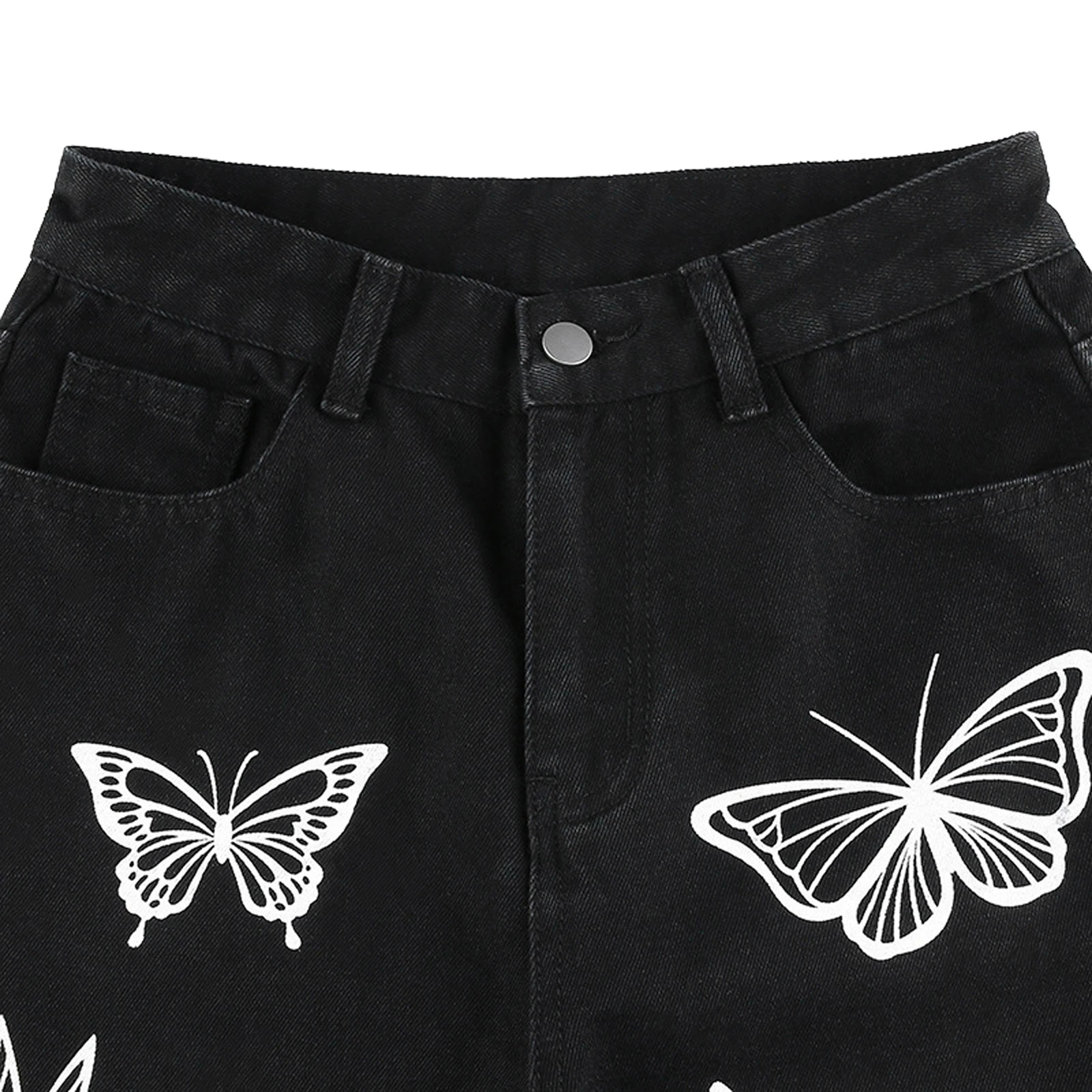 Женские джинсы HEYounGIRL с принтом бабочки, черные повседневные бр...