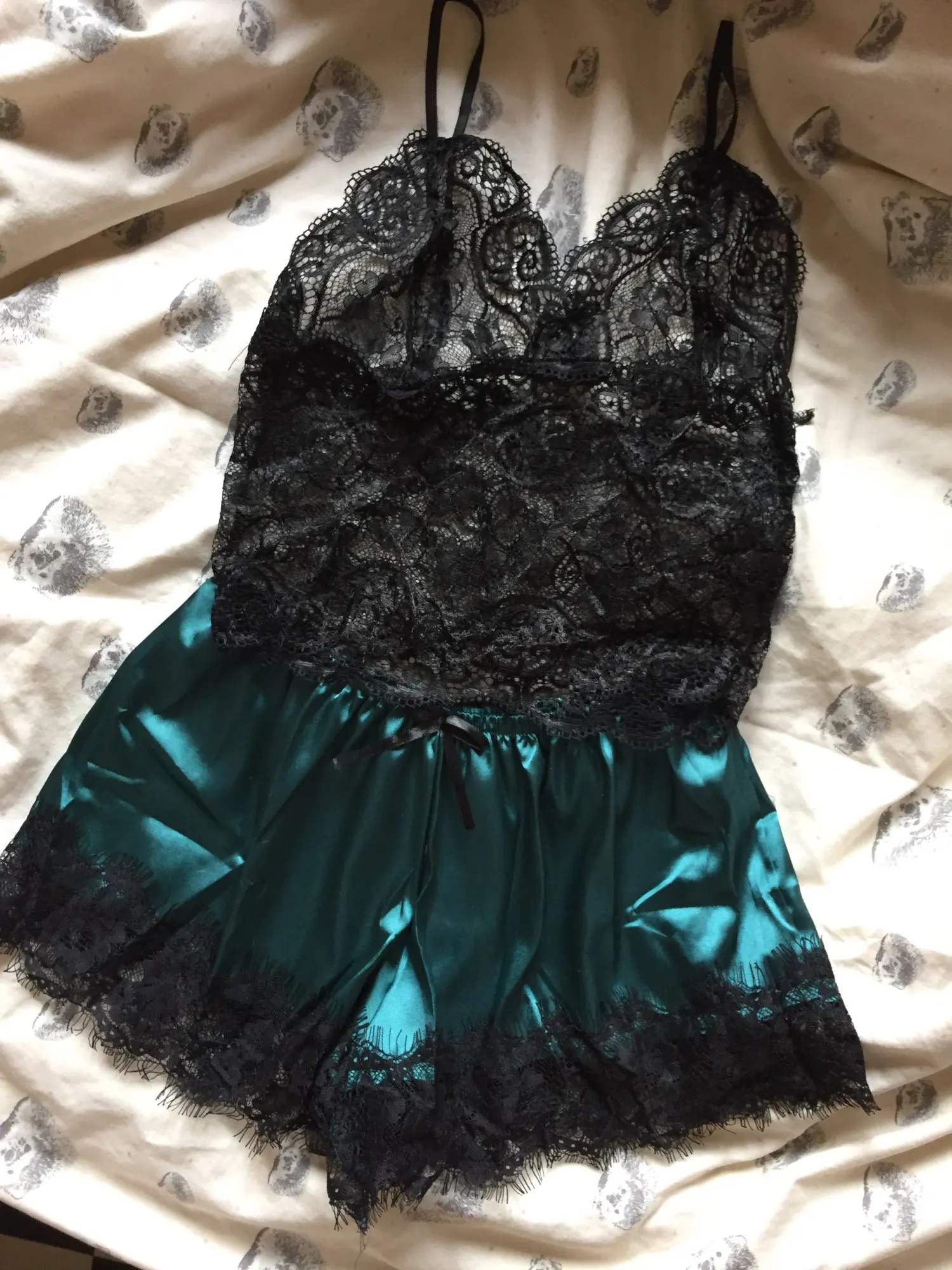 Женская кружевная Пижама, Сексуальный Атласный пижамный комплект, Черная кружевная Пижама с v-образным вырезом без рукавов, милый топ и шорты USD 5,06/Шт/Лот 1