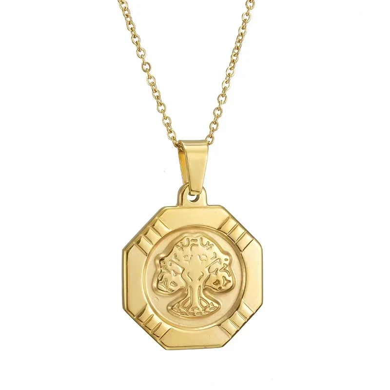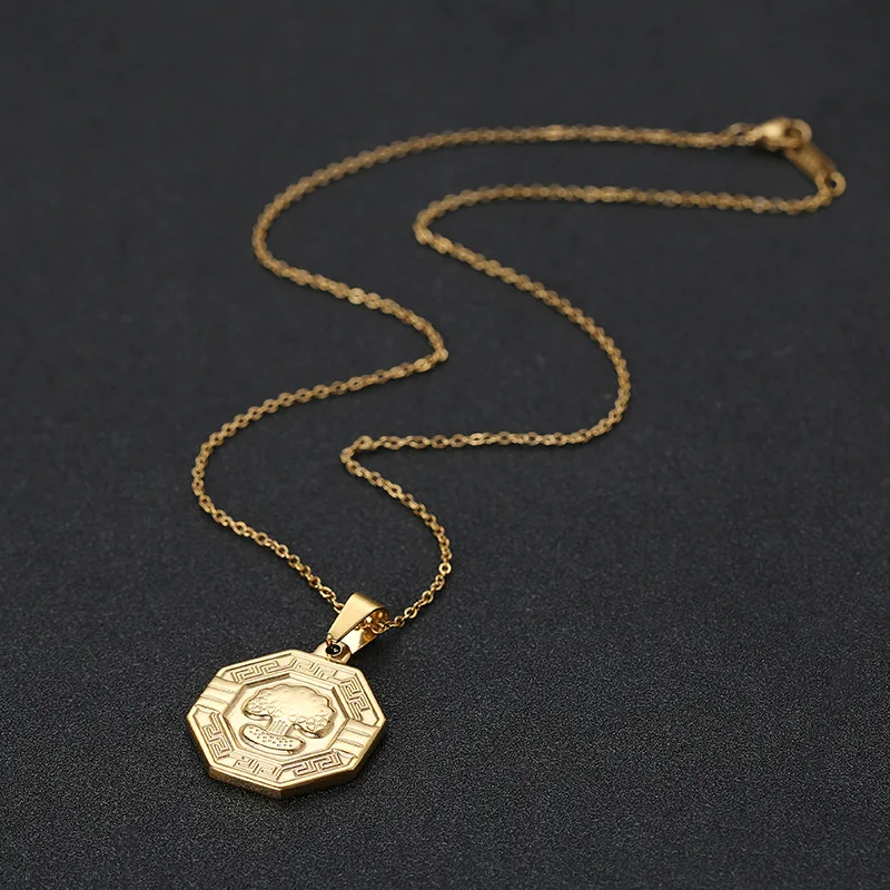 Простое дизайнерское ожерелье из нержавеющей стали с изображением дерева жизни, золотой круг, подвеска с изображением семейного дерева, ювелирные изделия, Золотая племенная цепочка до ключиц