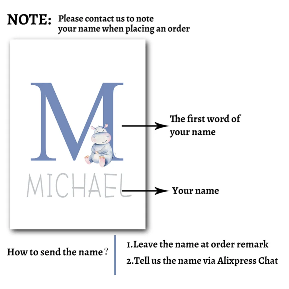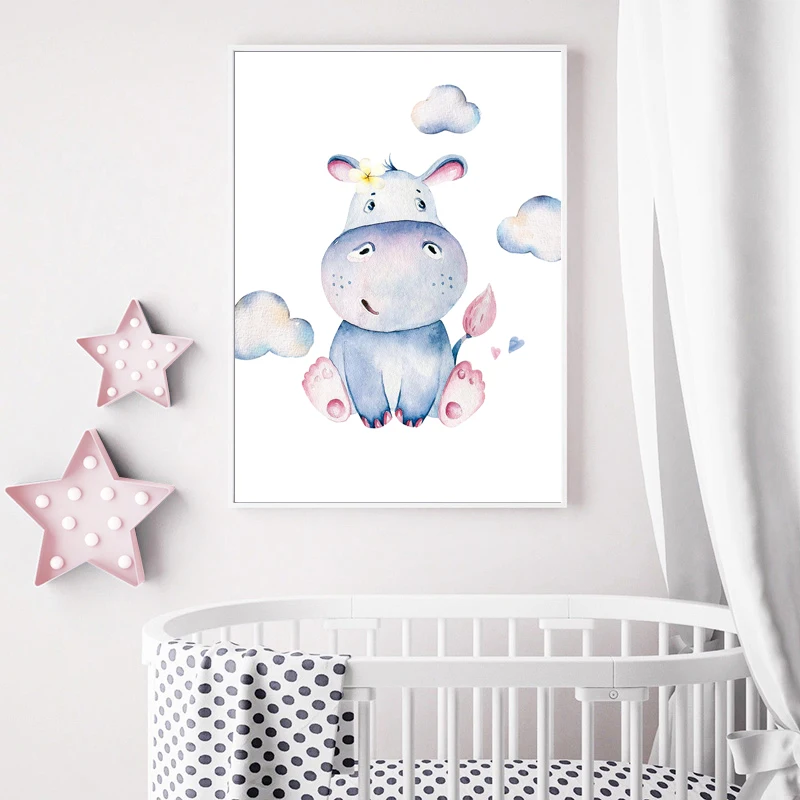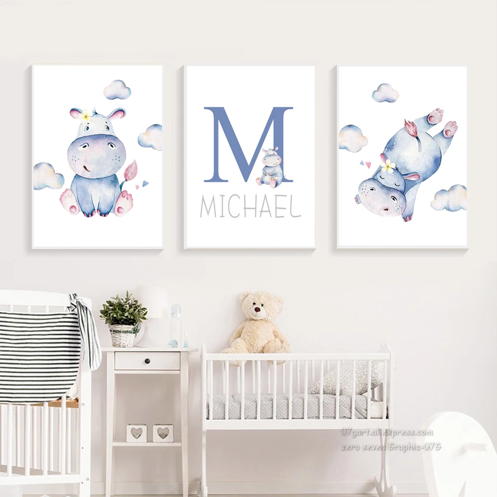 Акварельная мультяшная картина гиппопопотама, Настенная картина для детской комнаты, Картина на холсте, постер с именем на заказ, картины в скандинавском стиле, украшение детской комнаты