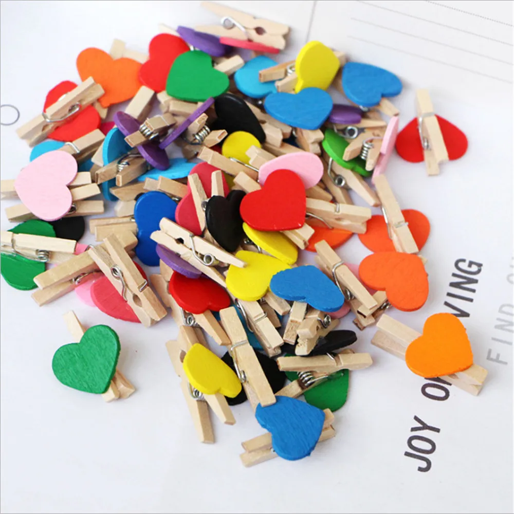 3 см 50 шт. деревянные цветные любовные сердца фото клипсы для запи...
