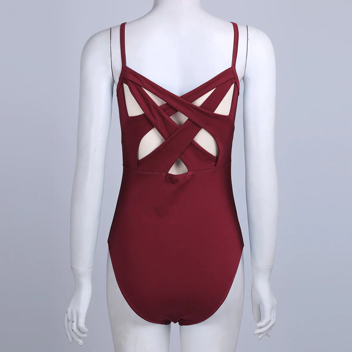 Цельный женский купальник для взрослых балерины, ремешки крест-накрест на спине.