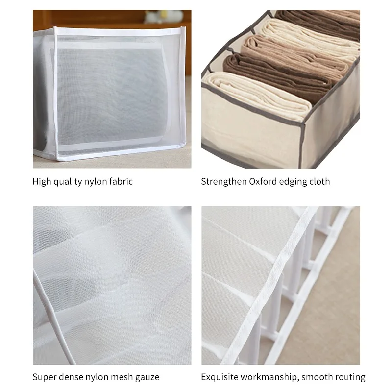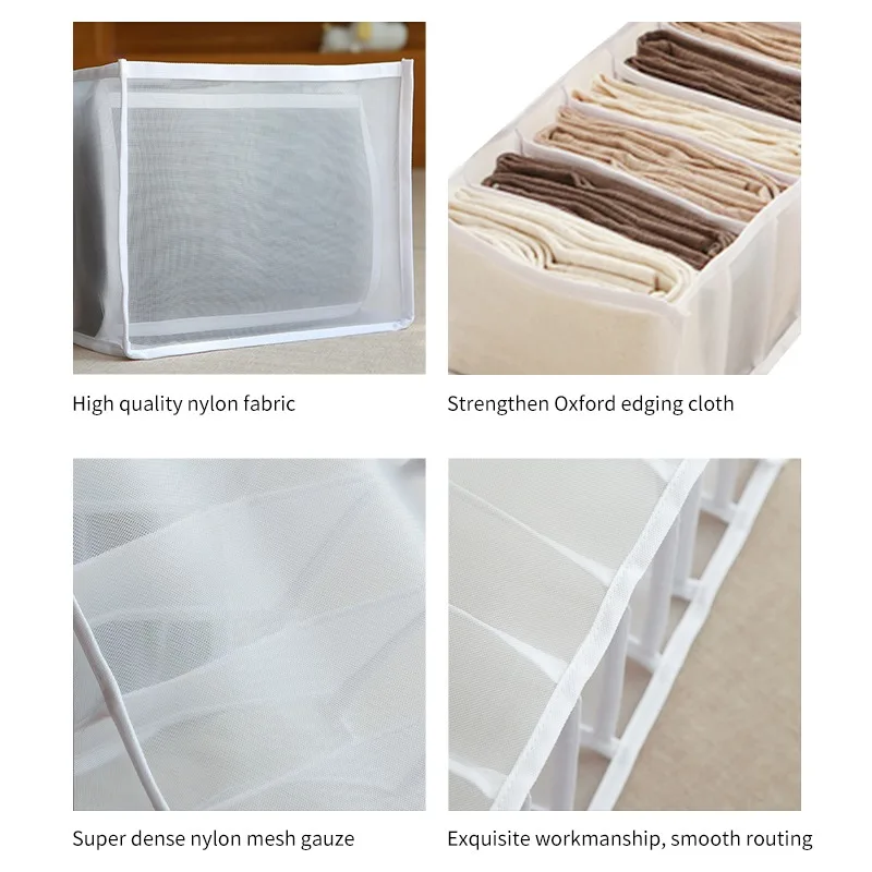 Информация о продукте:Цвет: серый, белыйРазмер:6 бра с сеткой коробка 12x32x32cm7 сетчатых трусов 12x32x12cm11 носки в сетку коробка 12x32x12cmМатериал: нейлонОсобенности:Храните свои товары с ним быстро и аккуратно, что позволяет легко найти ваш товарЛегко складывается, когда не используется, чтобы сэкономить местоИзготовлен из нейлоновой сетки, без запаха, моющийся и прочныйПодходит для гардеробного шкафа, шкафа или ящикаСортируйте свое нижнее белье, бюстгальтеры, носки, галстуки на шею и т. д.Посылка включает в себя:1/3 x Коробка для хранения