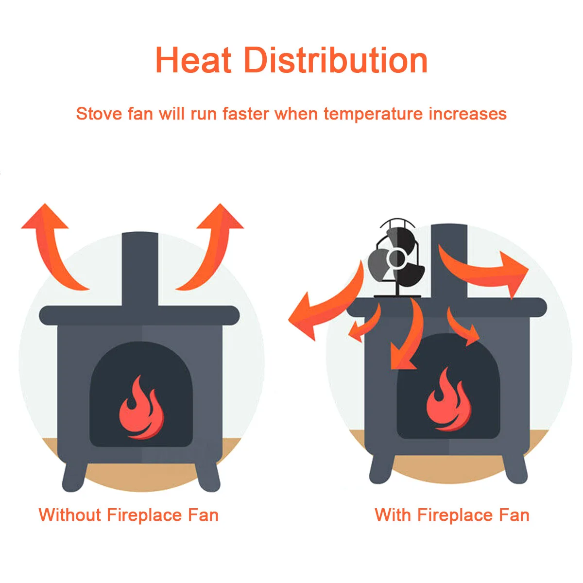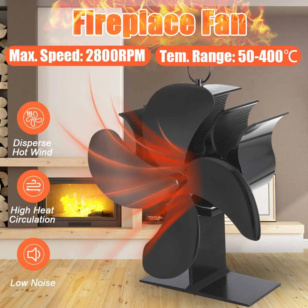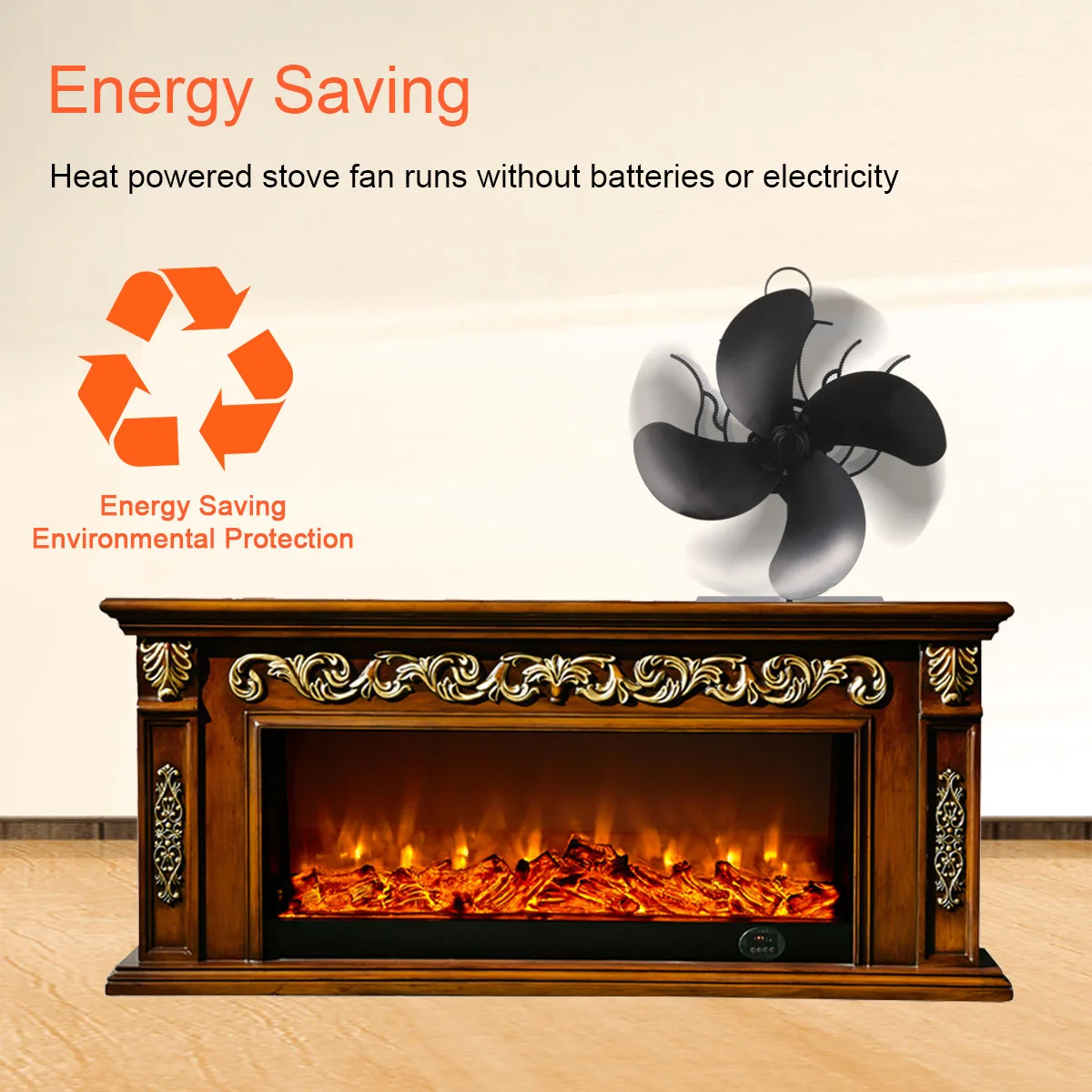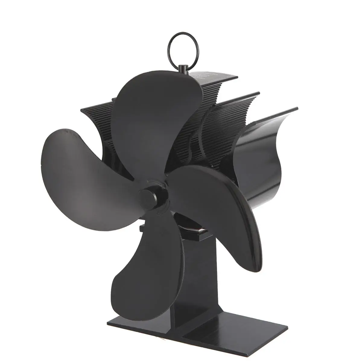 4 лопастей вентилятора черный каминный вентилятор для печи, работаю...