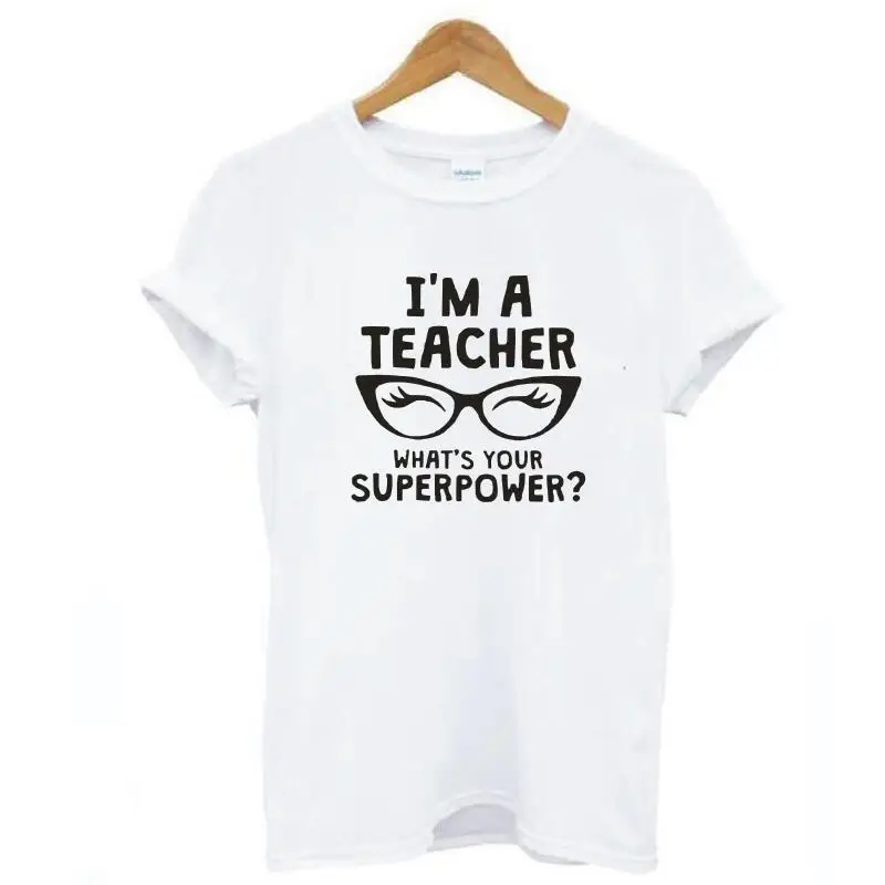 Футболка Harajuku, женские топы, Забавные футболки с надписью I'm A Teacher What's Your Superpower Teacher, женские повседневные футболки с коротким рукавом