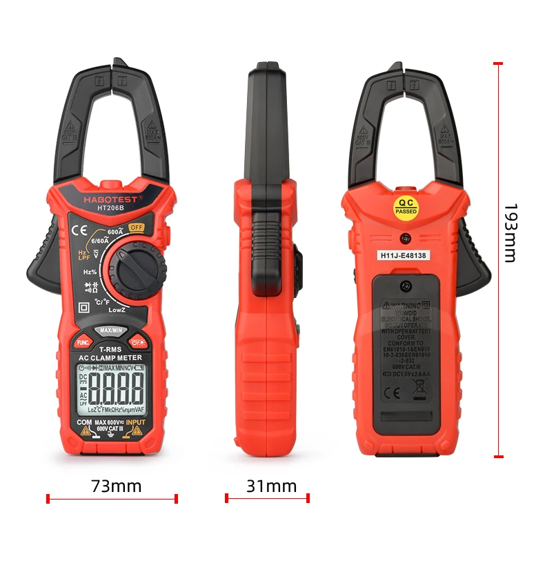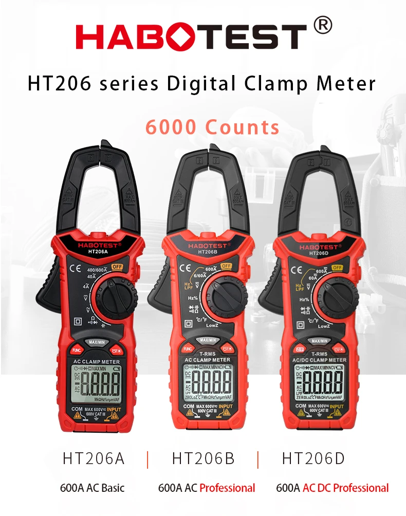 HT206 клещи Амперметр амперометрический мультиметр HABOTEST цифровой AC DC тестер тока Емкость Ом Гц 600 в 600A амперметр