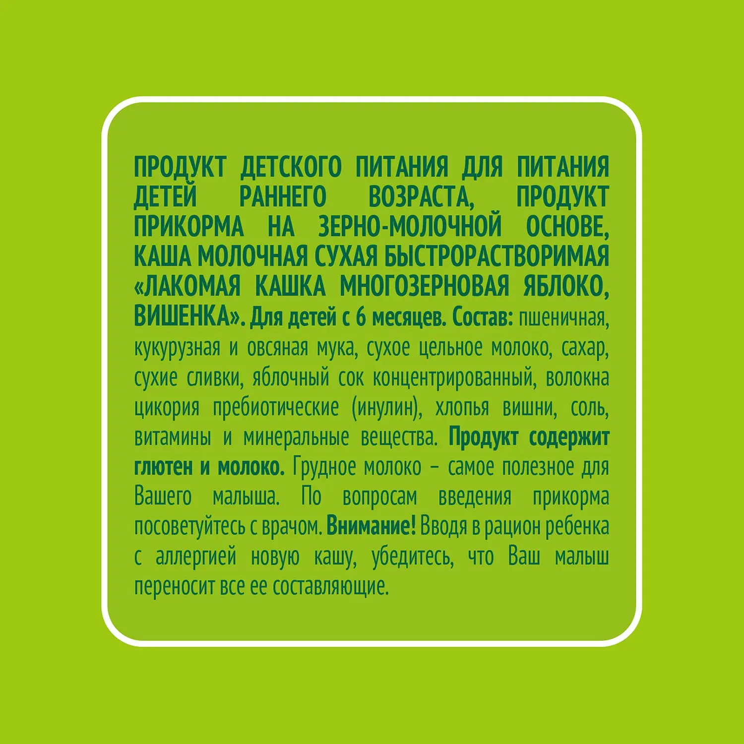 Каша Heinz Лакомая многозерновая яблоко-вишня 170г с 6 месяцев