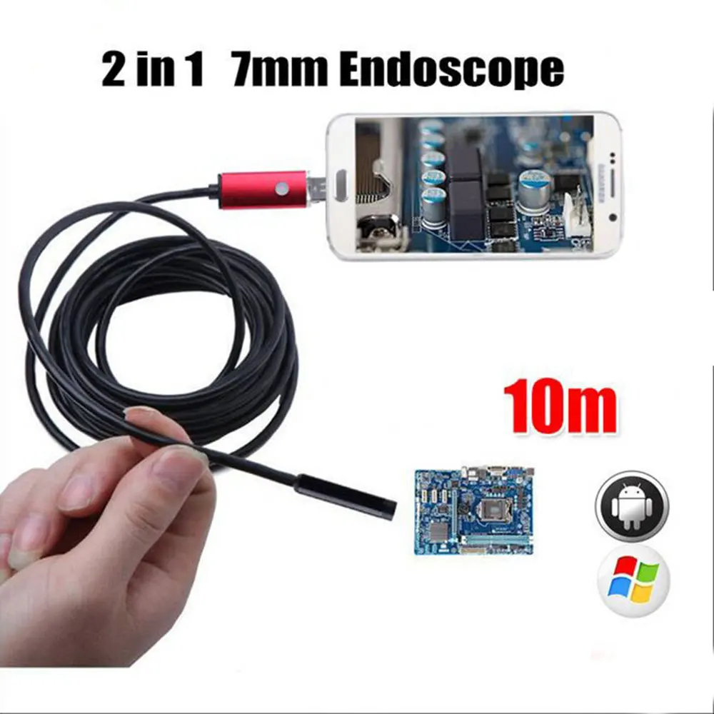 USB миниатюрная эндоскопическая камера для осмотра, гибкий жесткий кабель 7 мм 5 м 10 м, бороскоп для смартфонов на Android, ПК
