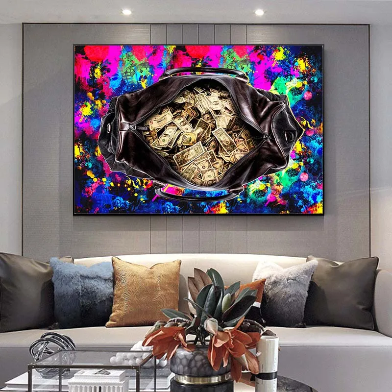 Холщовая живопись, настенный художественный плакат, Современная культура, монеты, пурпурный кошелек, уличное искусство, холст для домашнего декора
