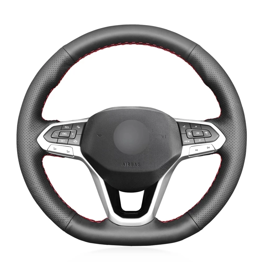 Рука сшитый черный PU Искусственная кожа Чехол рулевого колеса автомобиля для Volkswagen VW Golf 8 2020 Atlas 2020 2021