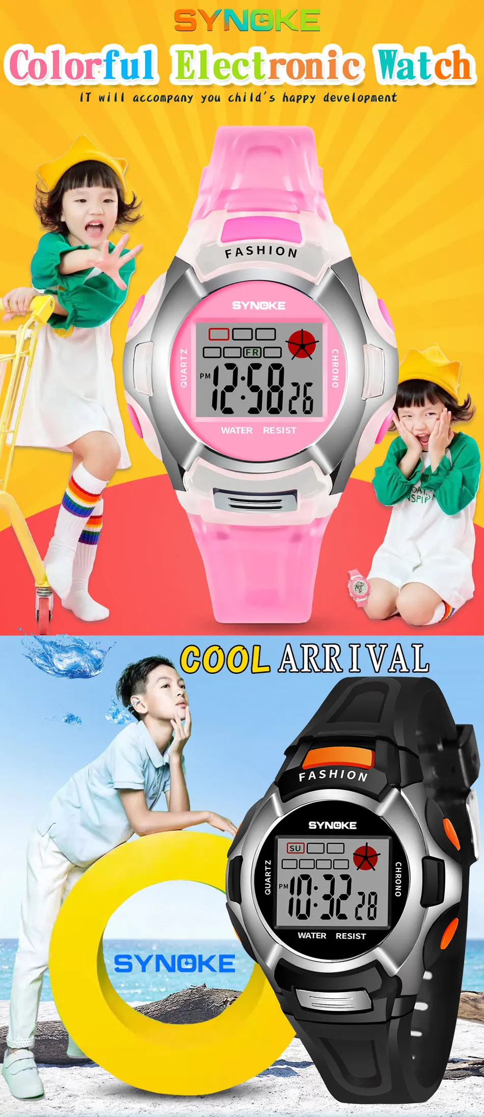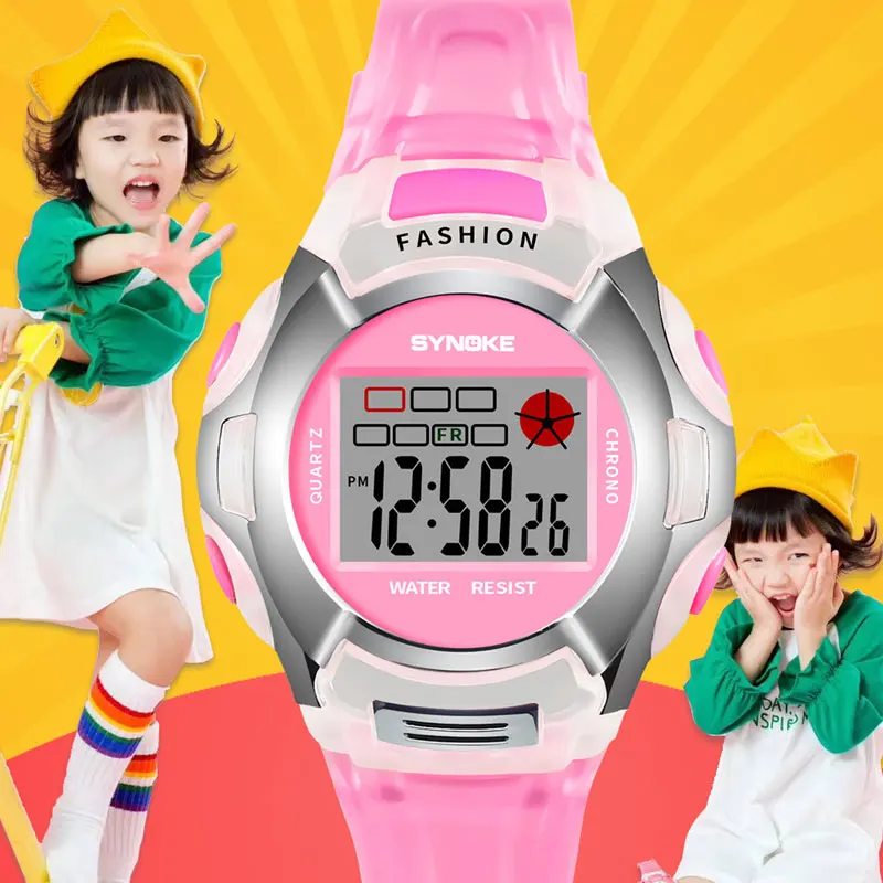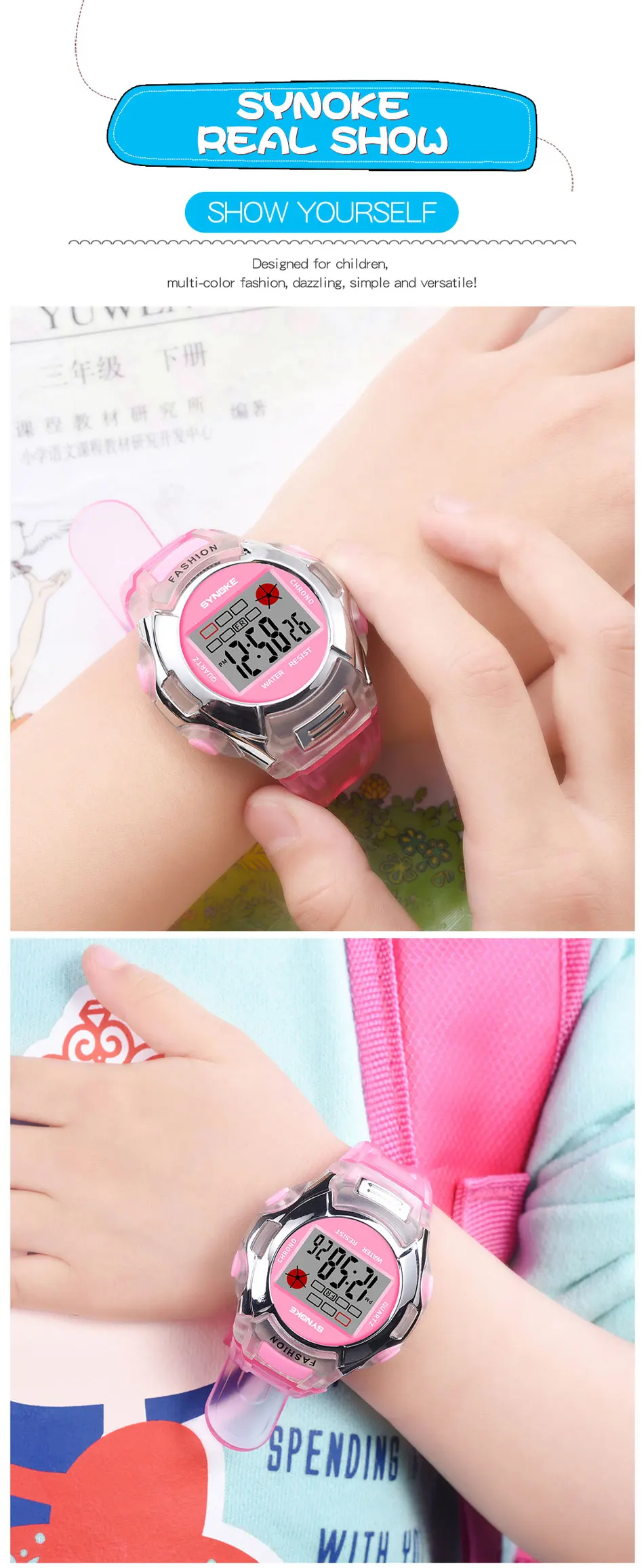 Часы наручные SYNOKE детские розовые, водонепроницаемые спортивные, с цифровой надписью, для мальчиков и девочек