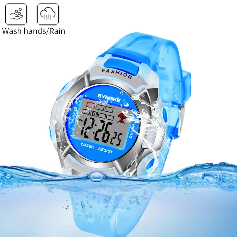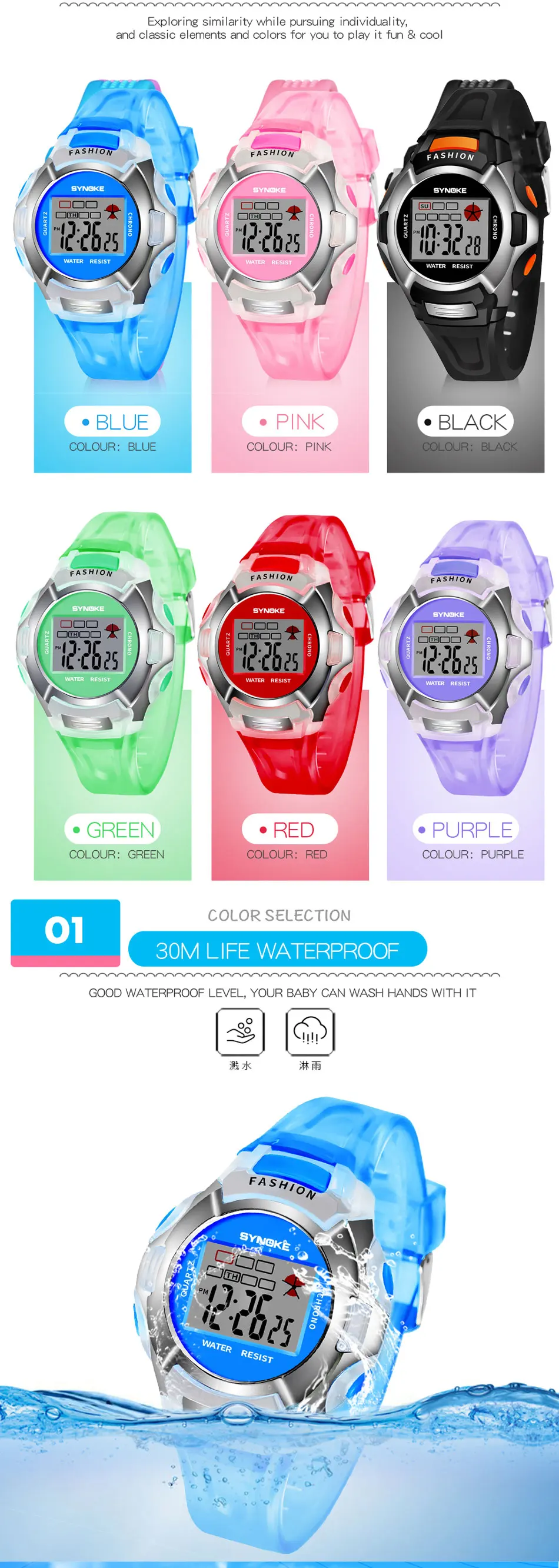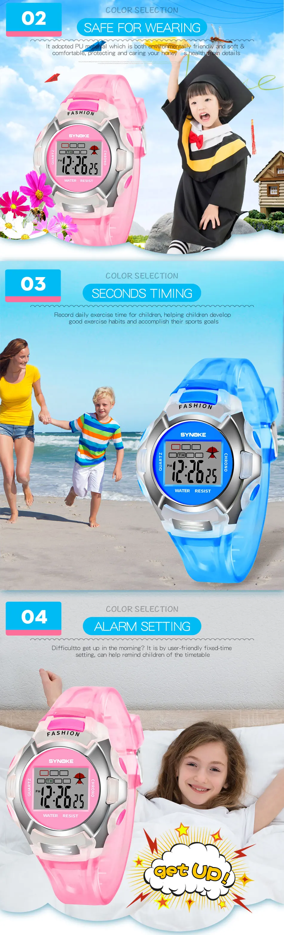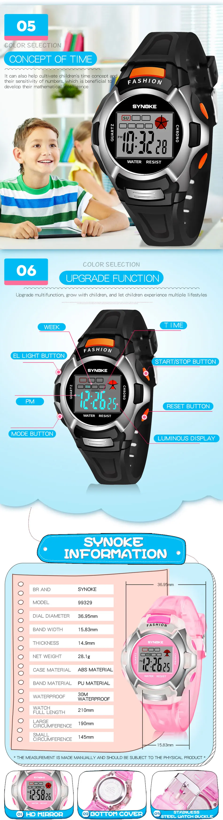 Часы наручные SYNOKE детские розовые, водонепроницаемые спортивные, с цифровой надписью, для мальчиков и девочек