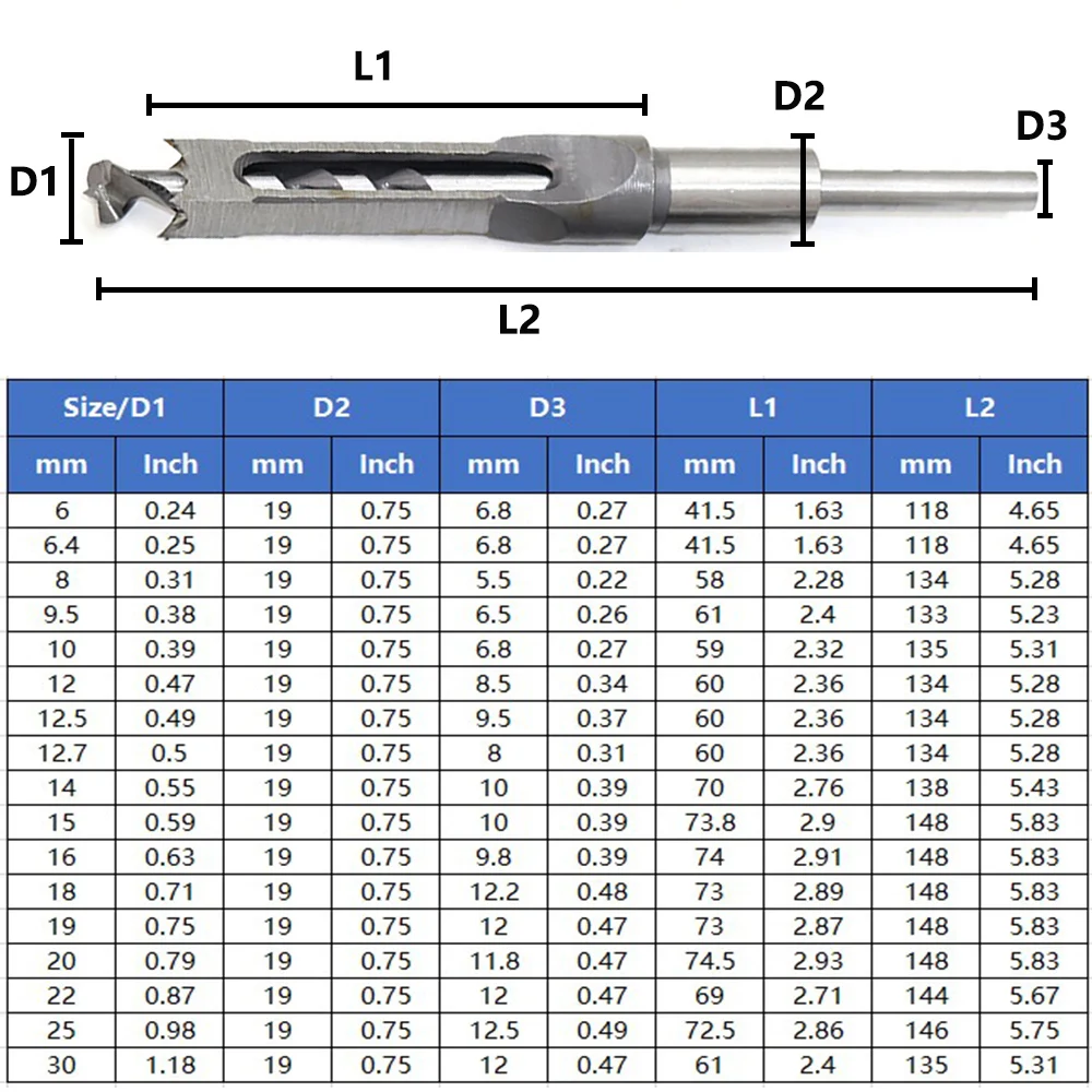 ♢Отлично подходит для сверления квадратных отверстий в дереве с помощью mortising машины или mortising приложения. Подходит для всех шлифовальных машин и сверлильных прессов. Сверло с квадратным отверстием в основном используется для деревообработки.