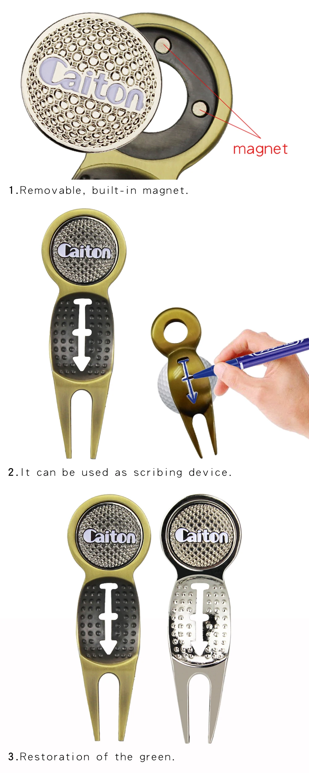 Инструмент для ремонта Гольф Divot, 1 шт., нержавеющий, магнитный, складной, многофункциональный, для гольфа, гольф-маркер, Прямая поставка