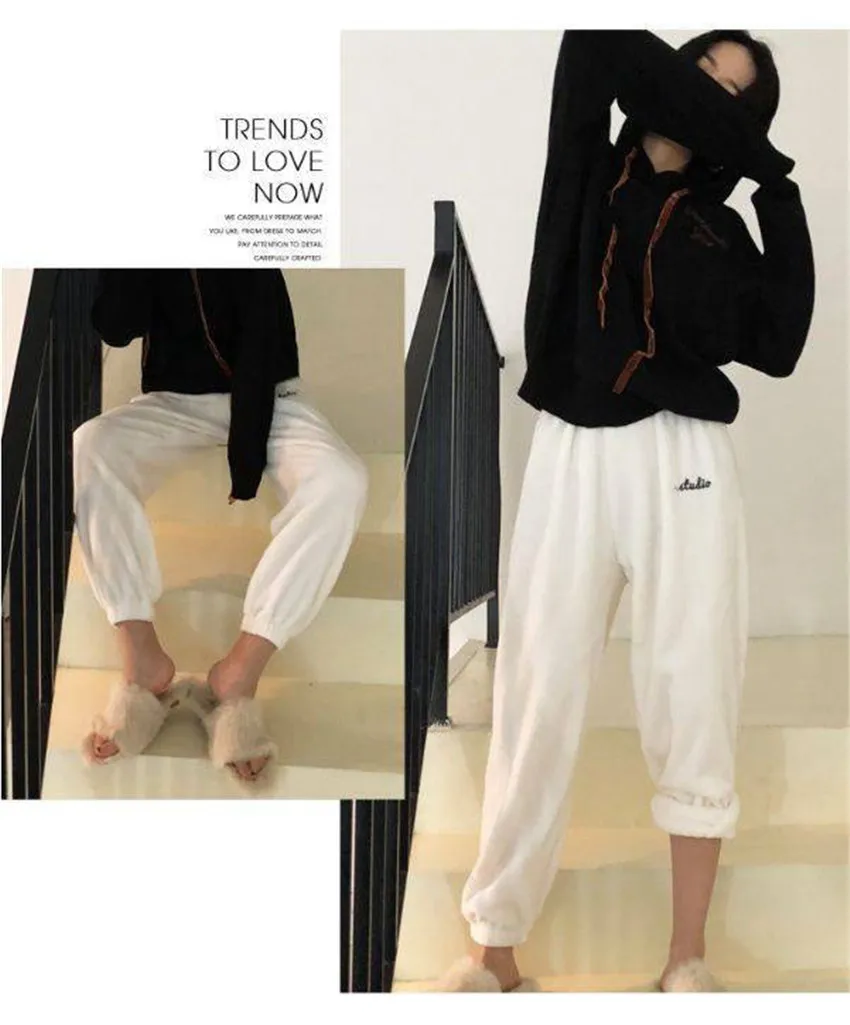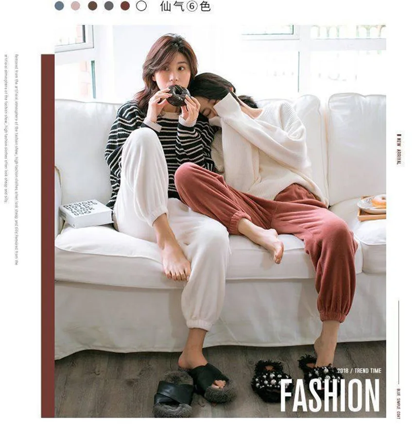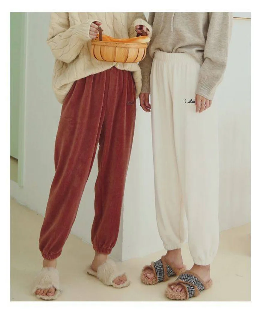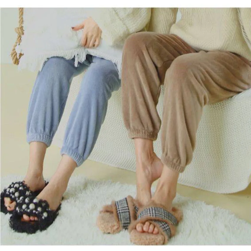 Зимняя Пижама, домашние штаны для женщин, эластичные брюки, Свободные Теплые утепленные пижамные штаны с панелями, одежда для сна, осенняя повседневная одежда для сна