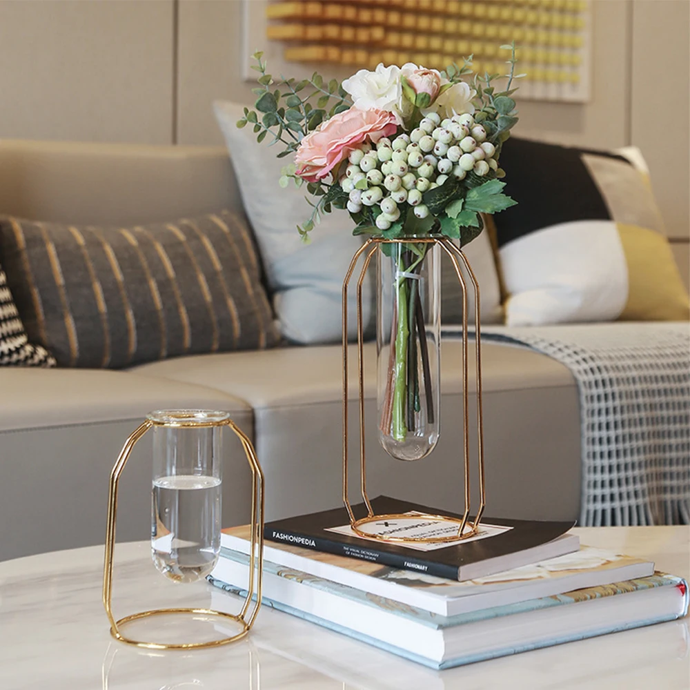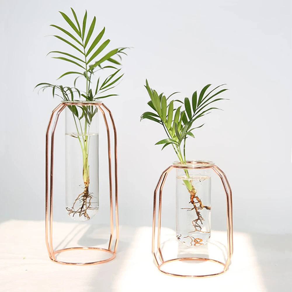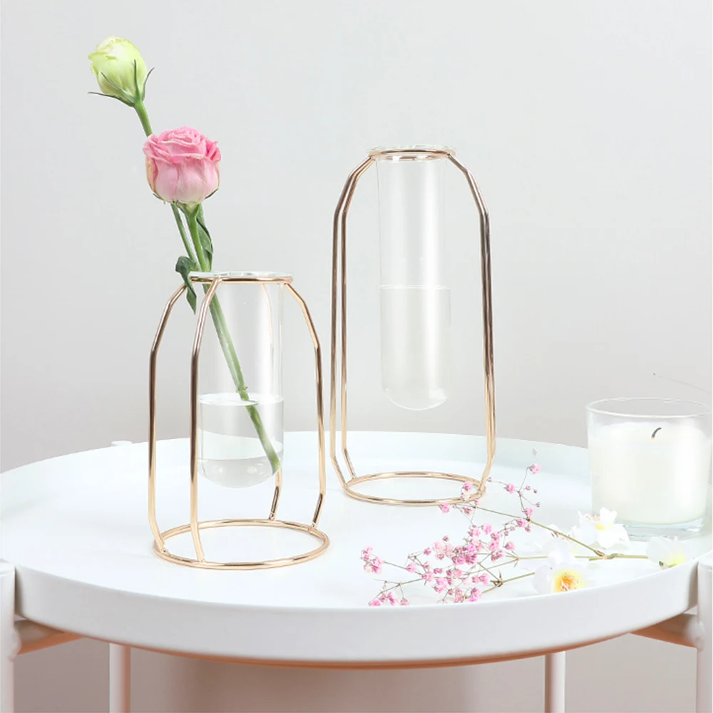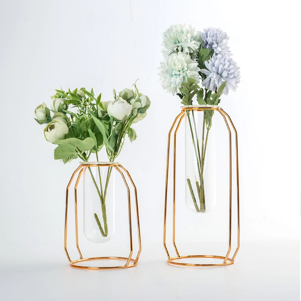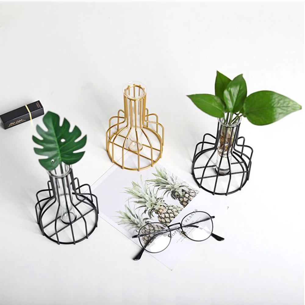 Ваза с золотыми железными линиями в скандинавском стиле, геометрический рисунок Цветочная ваза для растений, металлический держатель для растений, Современное украшение для сада и дома