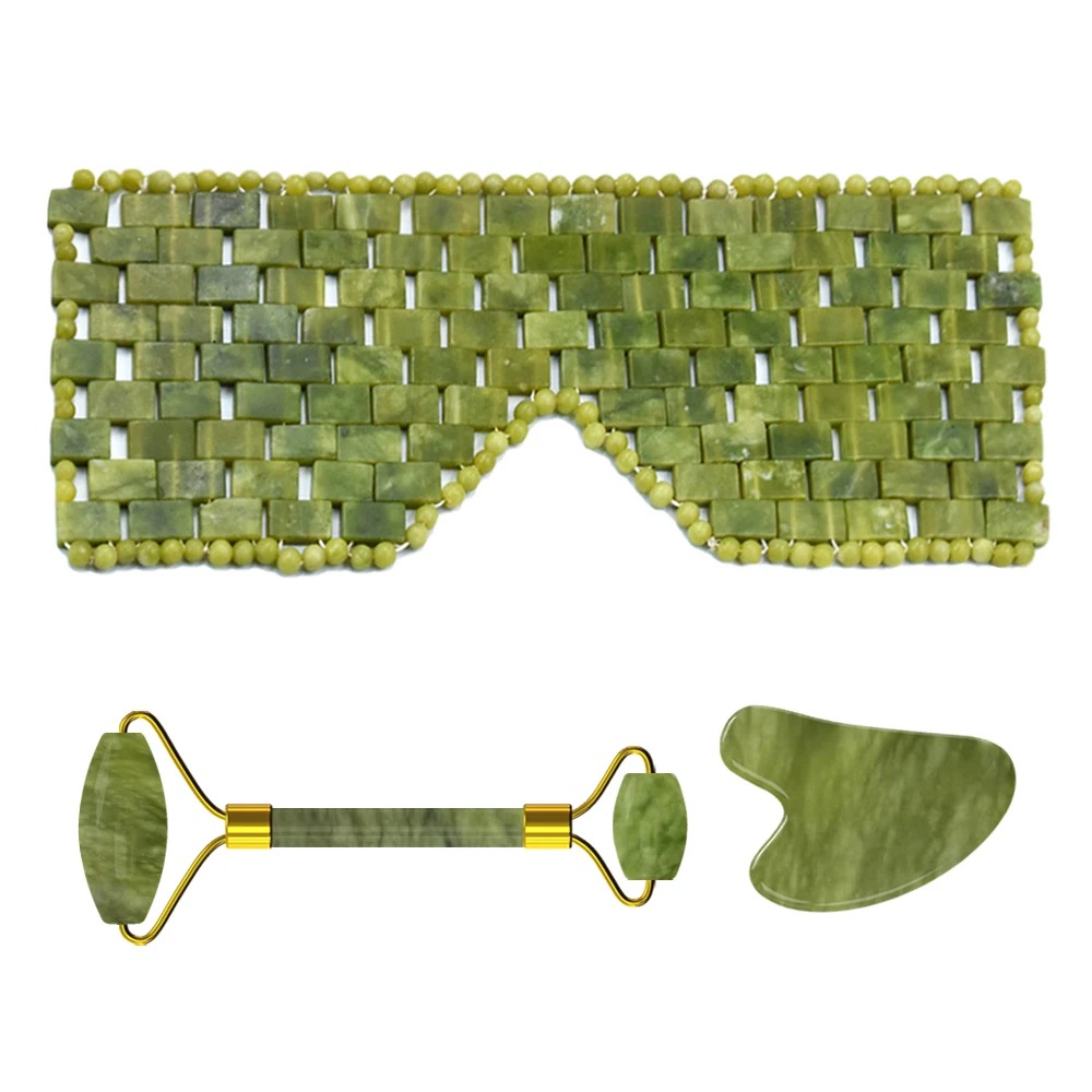 Натуральный камень нефрита маска для глаз ролик для массажа лица доска гуаша холодной терапии маска для глаз гуашь скребок массажер для лица нефритовый валик