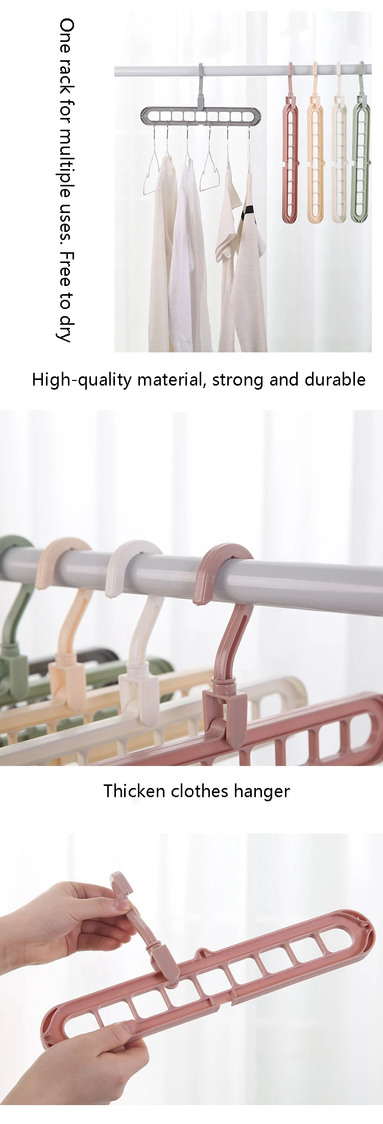 Описание: Эта вешалка может значительно сэкономить место в вашем гардеробе. Общежитие и квартира для ограниченного пространства. Держите рубашки, брюки и рубашки в порядке и без складок. Гибкие соединения на обоих концах для горизонтального или вертикального использования. Прочный полипропиленовый материал, удобная вешалка с девятью отверстиями, кран может вращаться на 360 градусов, дорожка имеет встроенную пряжку, можно использовать горизонтально и вертикально, легко хранить и сушить, является хорошим помощником для вашего приема.