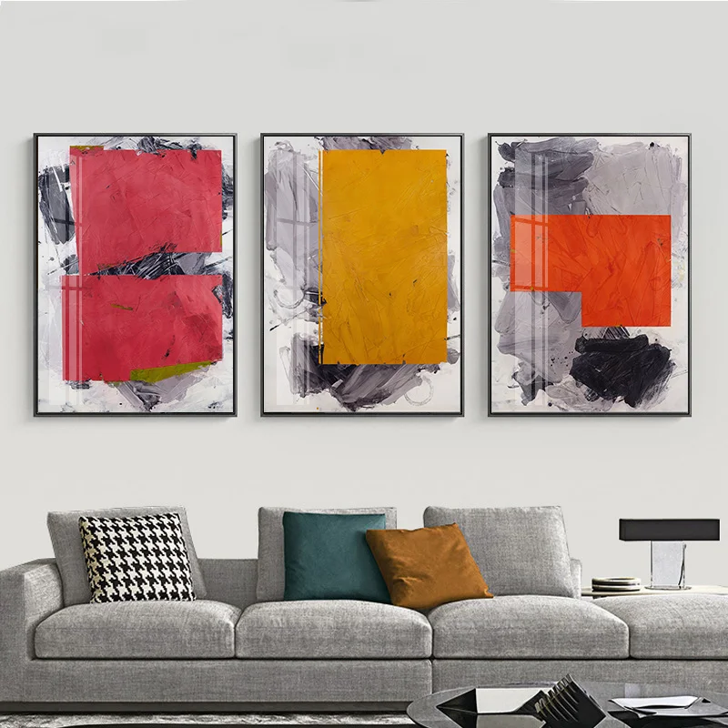 Абстрактный геометрический цветной блок плакат красный желтый серый настенное Искусство DIY 5D алмазная живопись скандинавский принт картина маслом для домашнего декора