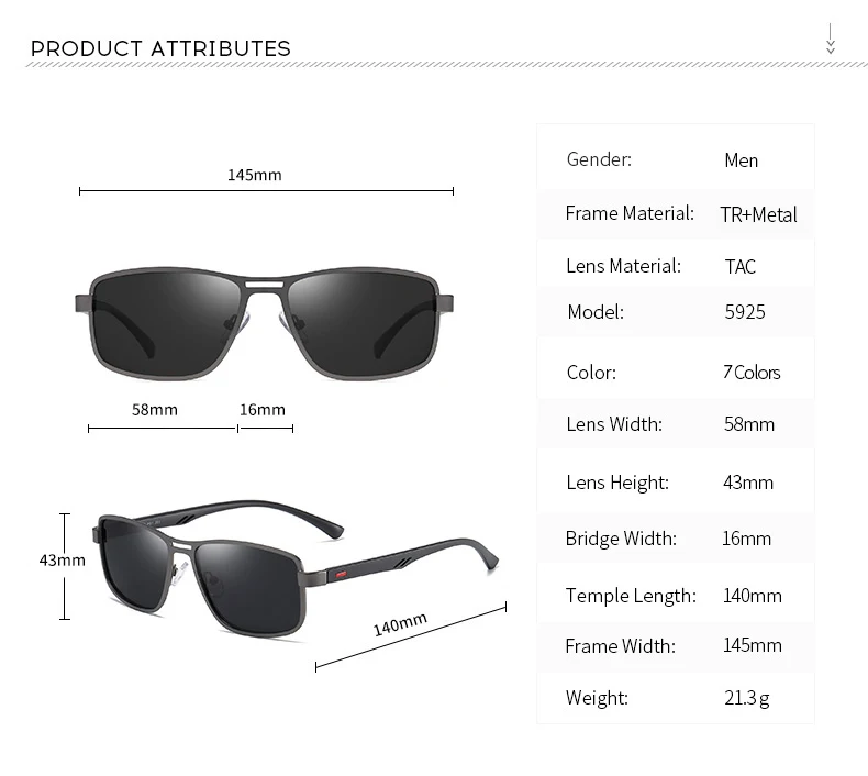 Мужские солнцезащитные очки в металлической оправе, с квадратными поляризационными линзами